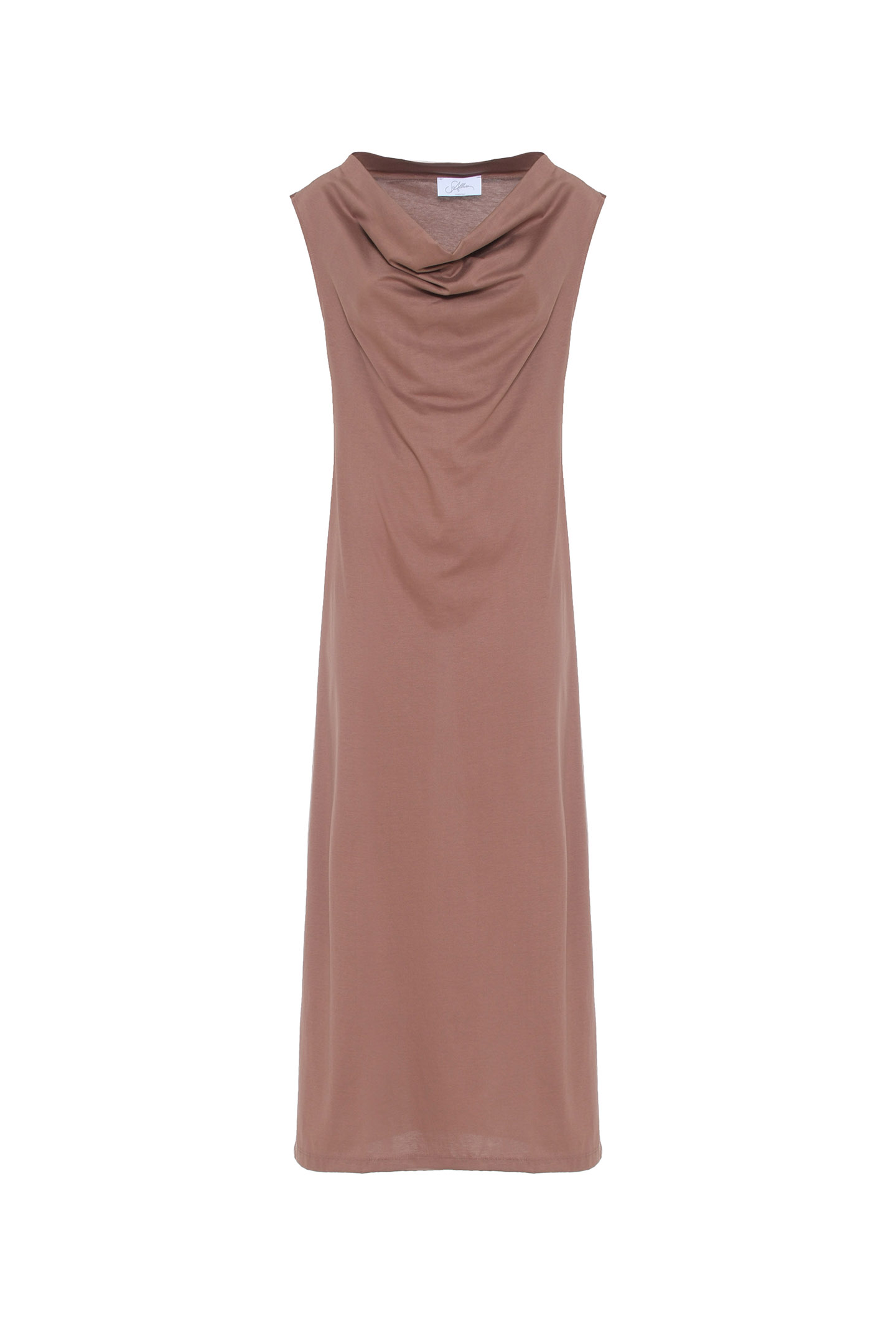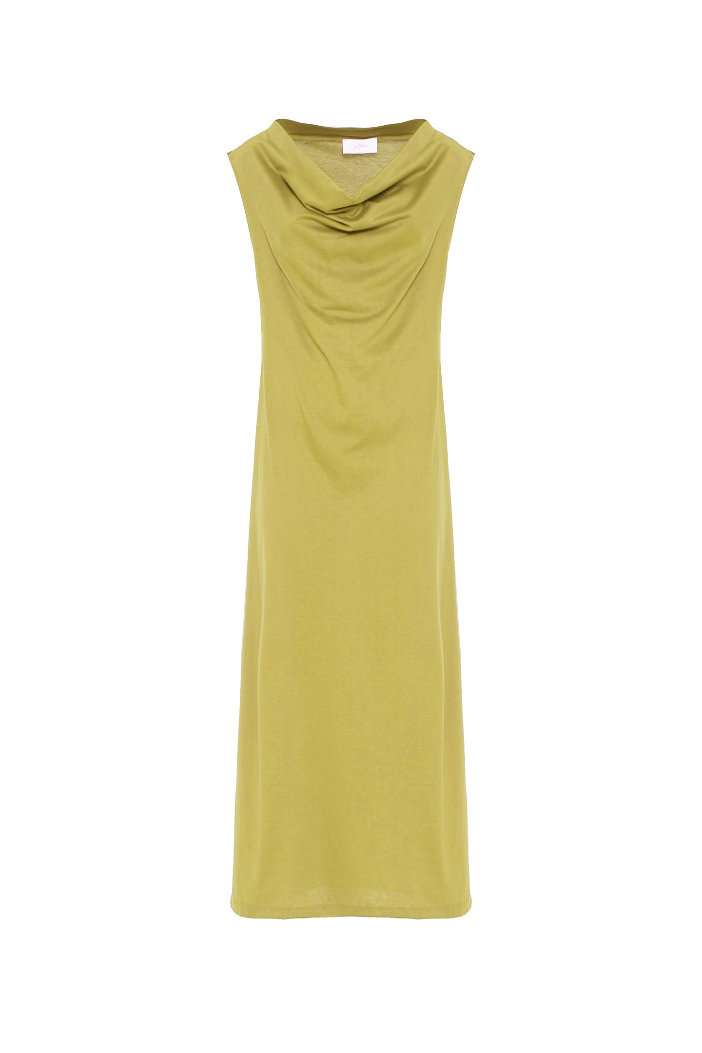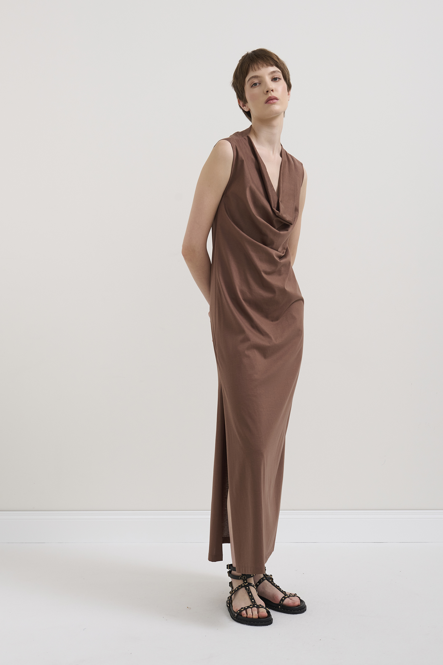 MAXI ABITO IN PURO COTONE CON SCOLLO A DRAPPEGGIO. PRESENTA UN MORBIDO SCOLLO DRAPPEGGIATO, CHE CREA UN ELEGANTE EFFETTO A CASCATA SUL DECOLLETÈ. LA LUNGHEZZA MIDI E LA LINEA SCIVOLATA CON SPACCO LATERALE, SI ADATTA FACILMENTE ALL'USO QUOITIDIANO E DA GIORNO. UN CAPO VERSATILE CHE UNISCE LA NATURALEZZA DEL TESSUTO AD UN TAGLIO MINIMALE, OFFRENDO UN'ESTETICA RAFFINATA E SOBRIA. IDEALE PER LE CALDE GIORNATE ESTIVE E LE SERATE INFORMALI. LA MODELLA È ALTA 178 CM E INDOSSA UNA S.