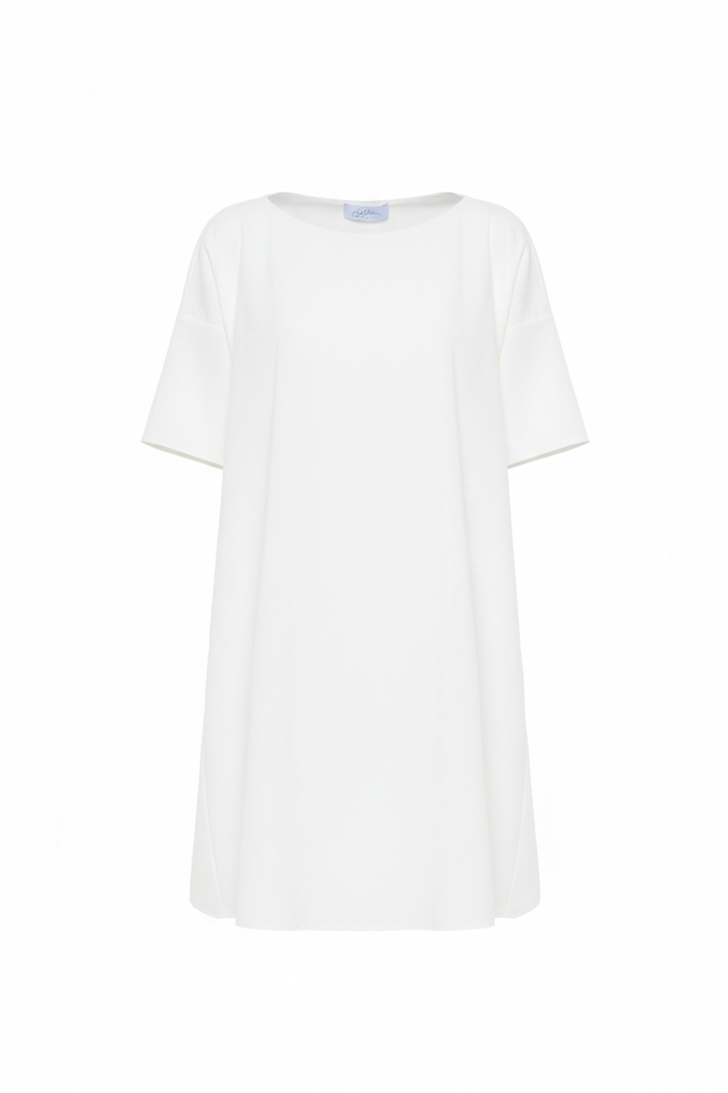 ABITO T-SHIRT OVERSIZE IN MISTO COTONE. DESIGN CON SCOLLO AMPIO A BARCA E MANICHE CORTE CON SPALLE SCESE. LA SILHOUETTE MORBIDA GARANTISCE MASSIMA LIBERTÀ E SI ADATTA AD OGNI TIPO DI FISICITÀ. IDEALE PER LOOK DA GIORNO INDOSSATO COME MINI-ABITO O ABBINATO SU JEANS E PANTALONI COME MAXI T-SHIRT. LA MODELLA È ALTA 1.78 M E INDOSSA UNA TAGLIA 42 IT.