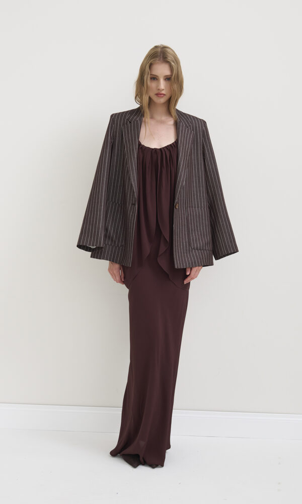 UN CAPO ICONICO E VERSATILE, IDEALE PER CERIMONIE O EVENTI FORMALI CHE RICHIEDONO UN LOOK DALL'ESTETICA CONTEMPORANEA E RICERCATA.