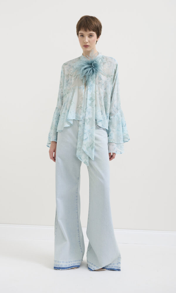 IL MODELLO SI DISTINGUE PER IL RAFFINATO CONTRASTO DEL COLLO CLASSICO E DEI POLSI ABBOTTONATI.