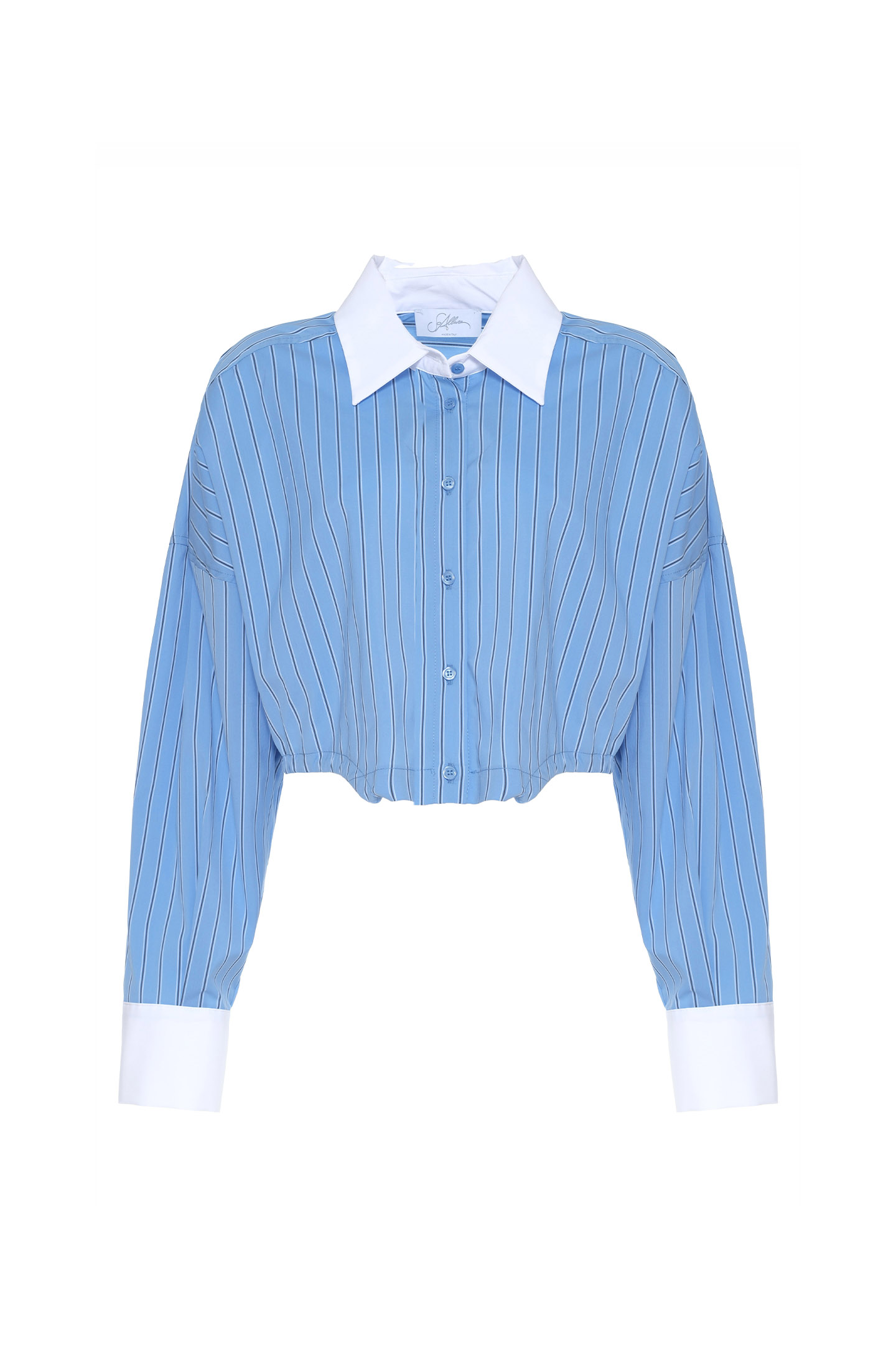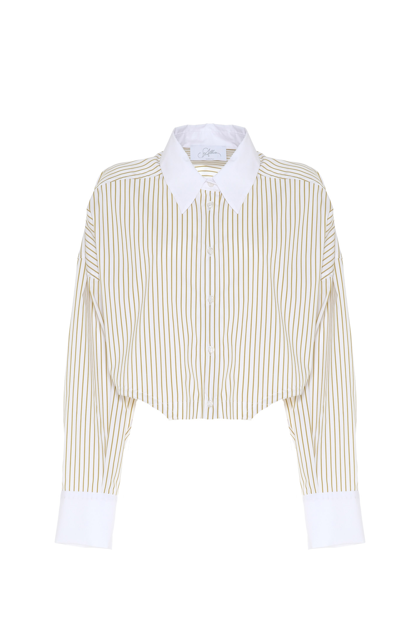 CAMICIA IN POPELINE DI COTONE A RIGHE VERTICALI.