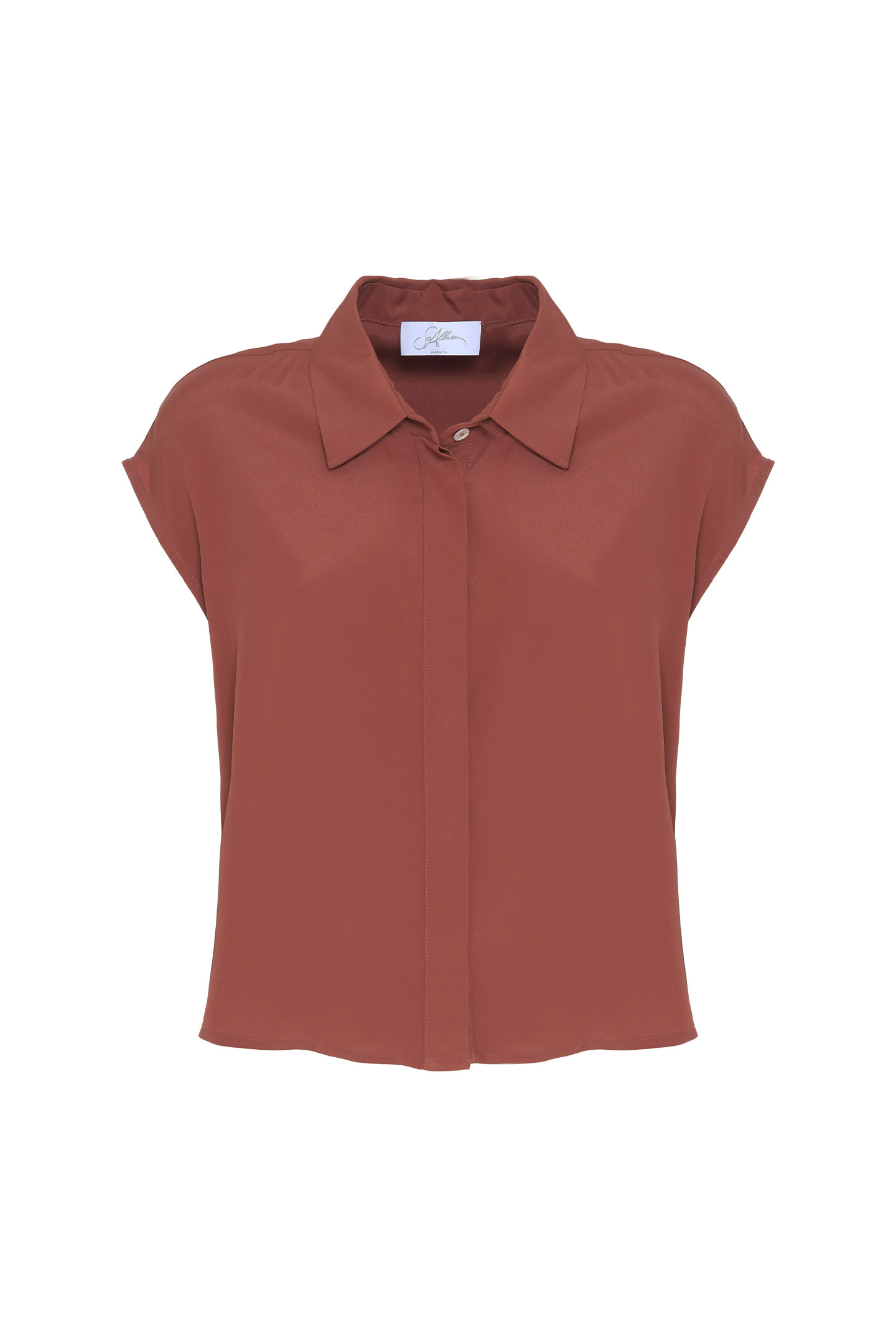 CAMICIA DAL TAGLIO DRITTO ED ESSENZIALE, REALIZZATA IN TESSUTO LEGGERO MISTO SETA. IL MODELLO È CARATTERIZZATO DA UN COLLETTO CLASSICO E DA UNA CHIUSURA FRONTALE CON BOTTONI NASCOSTI. LINEA FLUIDA E VESTIBILITÀ COMODA, IDEALE PER LOOK DA UFFICIO O PER OUTFIT PIÙ CASUAL. LA MODELLA È ALTA 178 CM E INDOSSA UNA TAGLIA 42 IT.