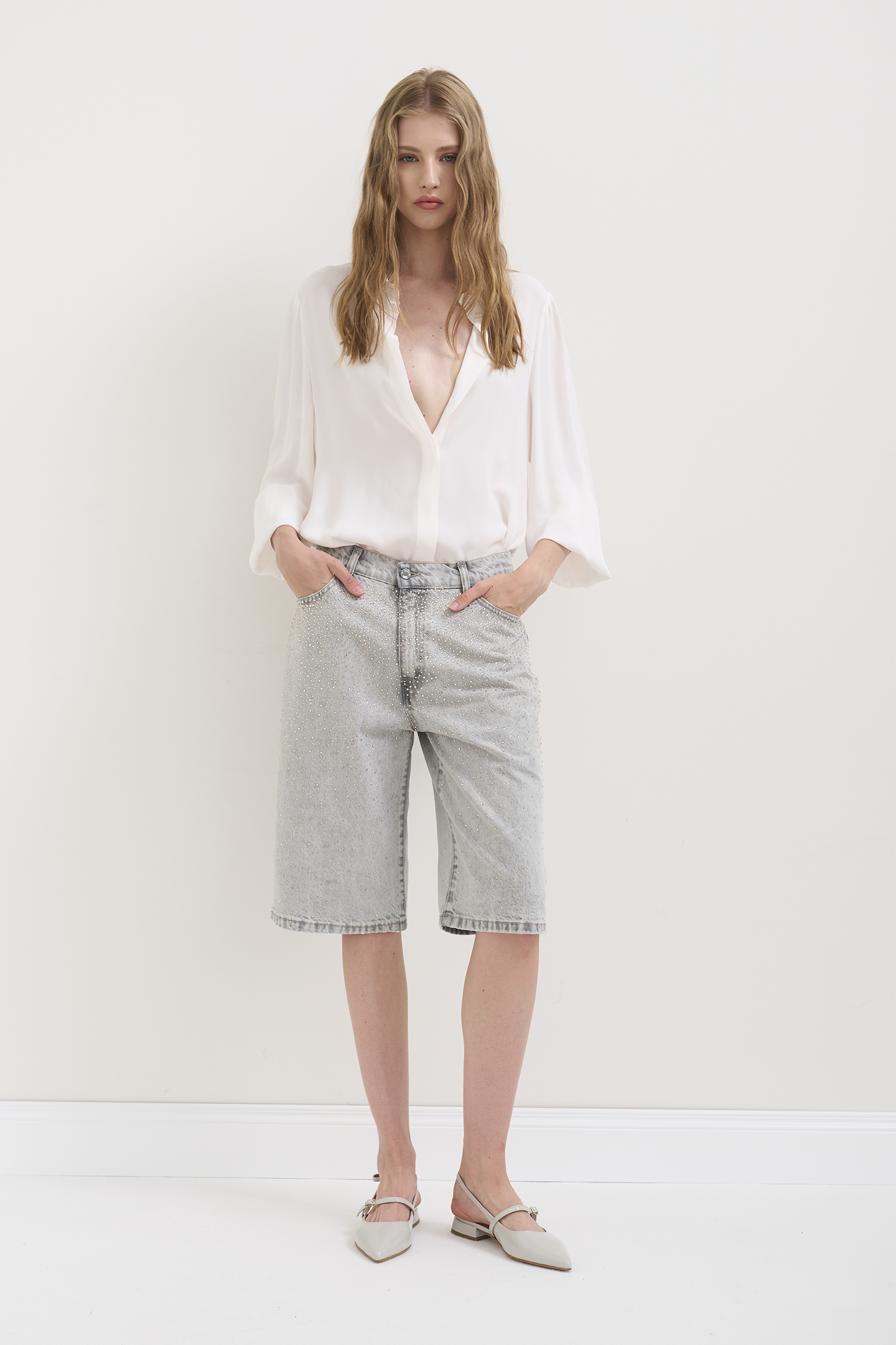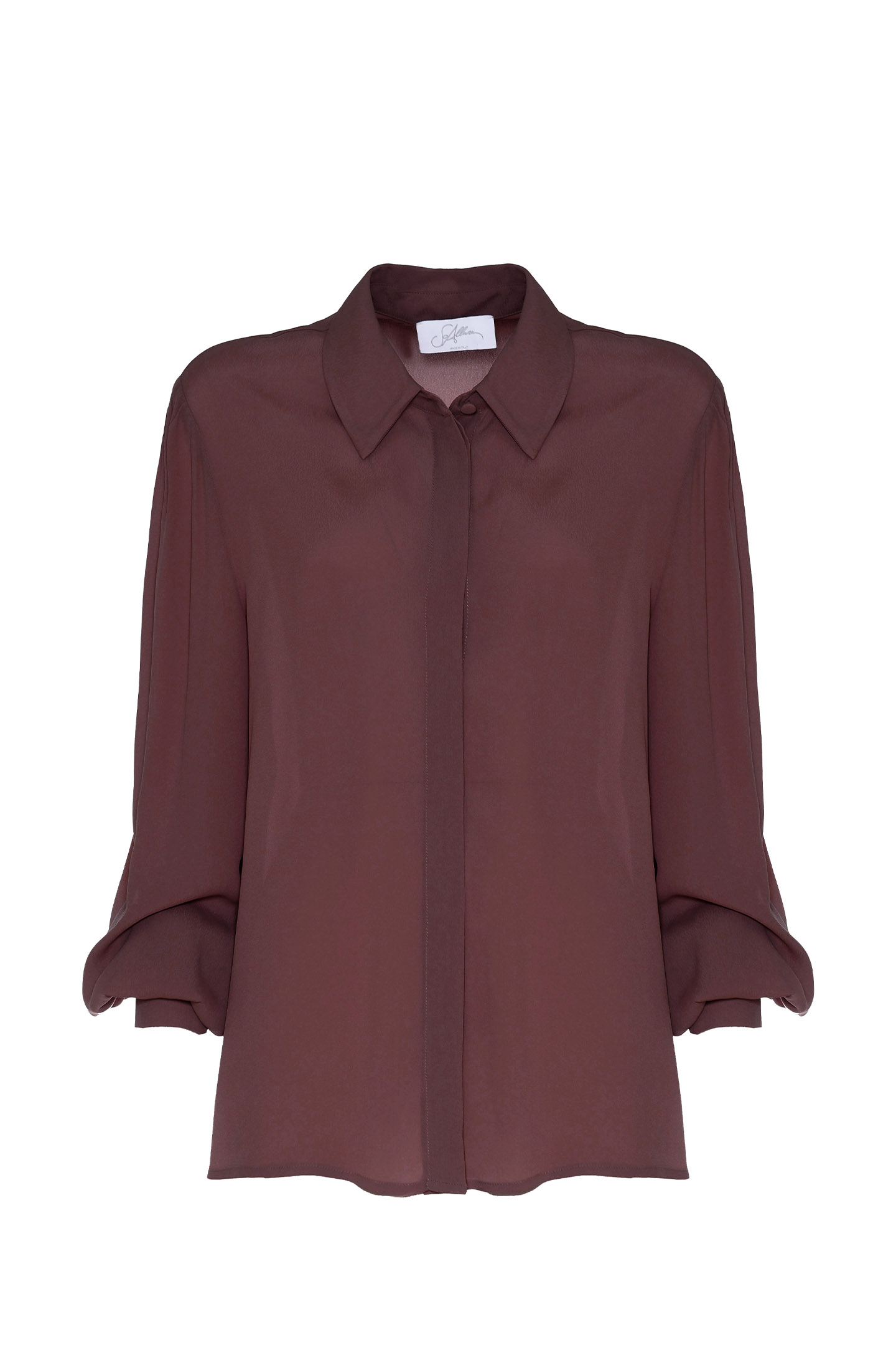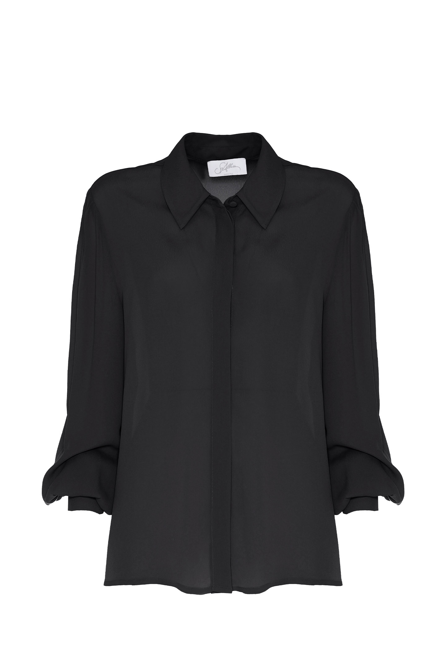 CAMICIA IN PURA VISCOSA DALLA LINEA FLUIDA. MODELLO CON COLLO CLASSICO E ABBOTTONATURA NASCOSTA. PRESENTA AMPIE MANICHE LUNGHE RIFINITE DA POLSINI ABBOTTONATI. IL TESSUTO FLUIDO DONA COMFORT E UNA CADUTA NATURALE, PERFETTA PER LOOK ELEGANTI O CASUAL RAFFINATI. LA MODELLA È ALTA 1.78 M E INDOSSA UNA TAGLIA 42 IT.