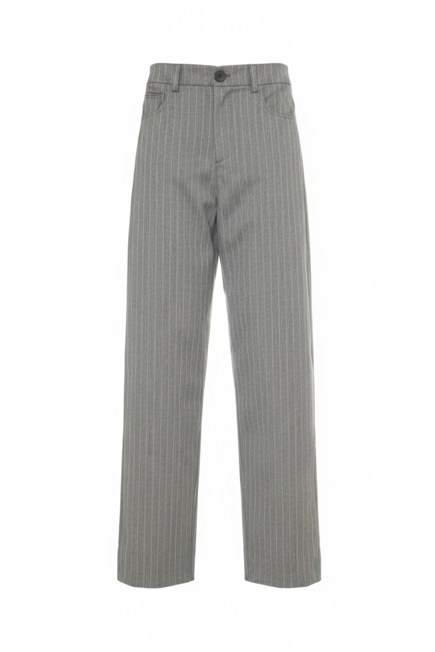 PANTALONI SARTORIALI A GAMBA DRITTA IN TESSUTO MOTIVO GESSATO. CARATTERIZZATI DA UNA LINEA PULITA E FORMALE CON VITA REGOLARE CON PASSANTI PER CINTURA E CHIUSURA CON BOTTONE E ZIP SUL DAVANTI. PRESENTANO TASCHE LATERALI ALLA FRANCESE E TASCHE A FILETTO SUL RETRO. IL TAGLIO LEGGERMENTE MORBIDO LO RENDE PERFETTO PER LOOK FORMALI O PER OUTFIT PIÙ RILASSATI D’ISPIRAZIONE ANDROGINA. UN CAPO VERSATILE, DA INDOSSARE IN COORDINATO O SPEZZATO.
