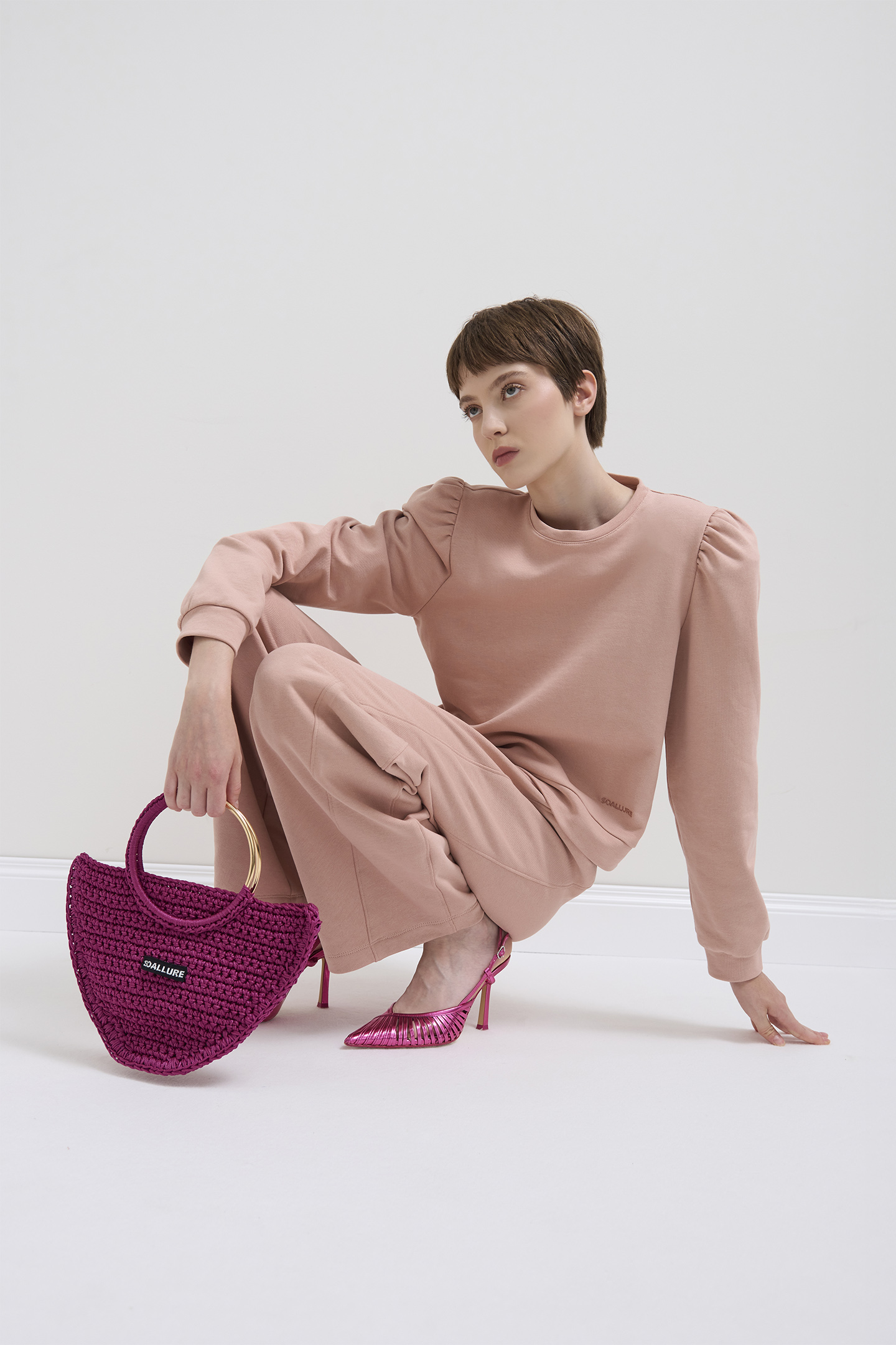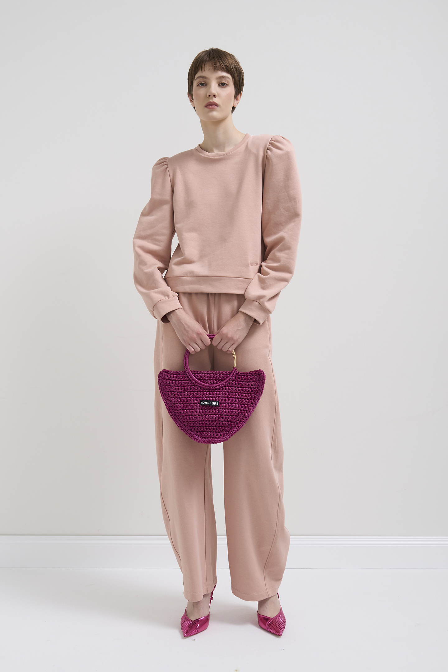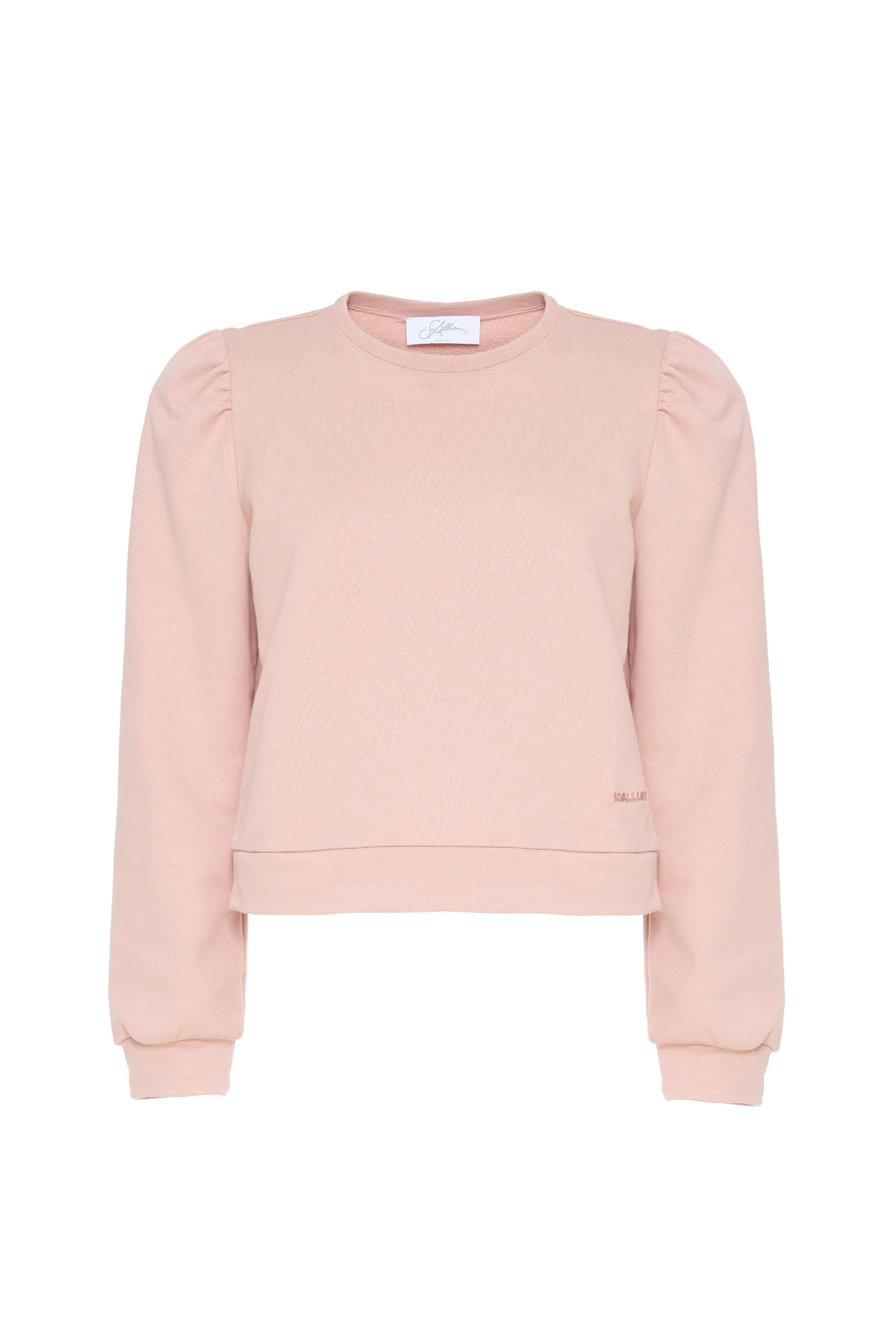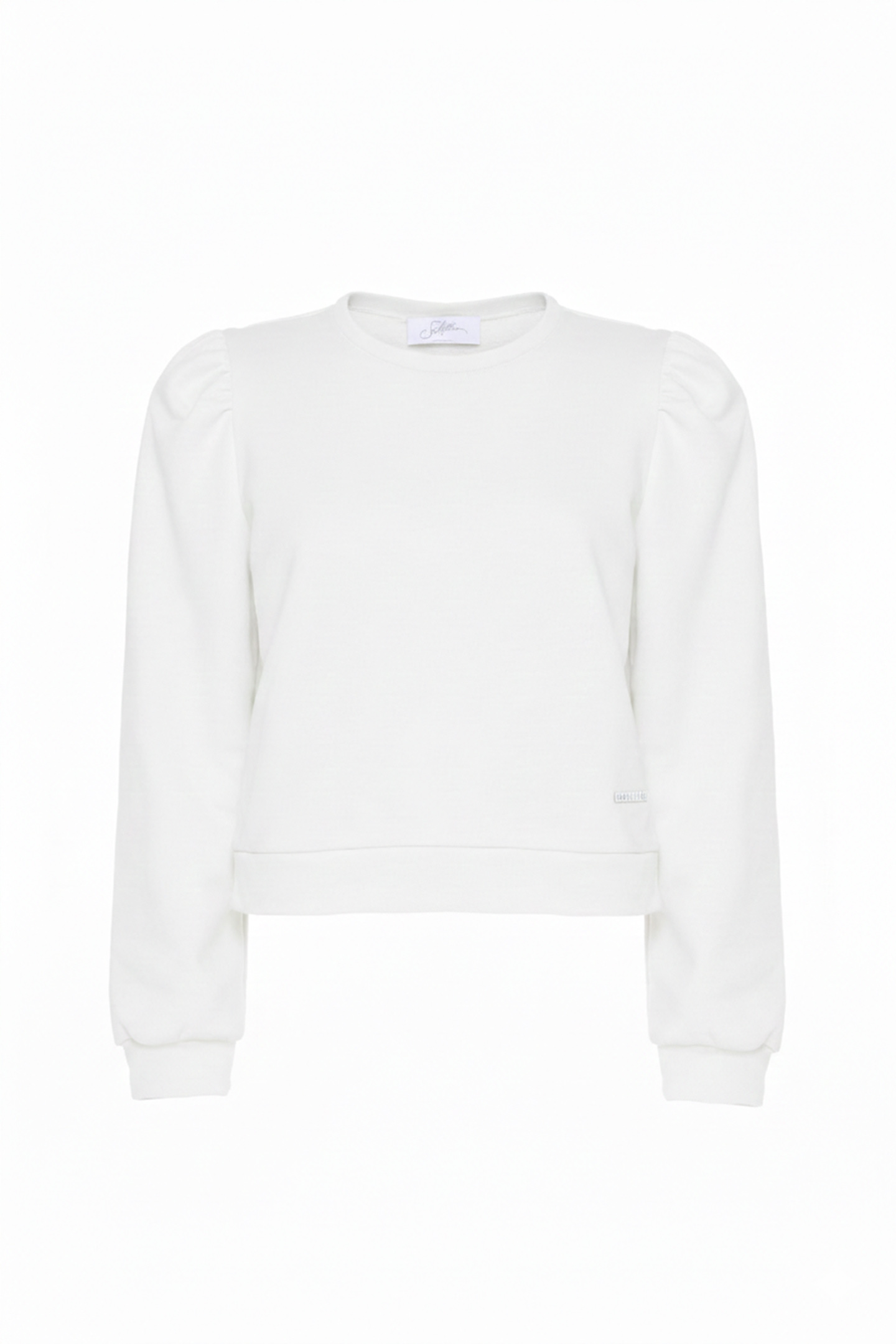 FELPA IN JERSEY DI COTONE A GIROCOLLO. CARATTERIZZATA DA UNA VESTIBILITÀ REGOLARE, SI DISTINGUE PER LE SUE MANICHE A SBUFFO CHE CONFERISCONO VOLUME E UN TOCCO ROMANTICO ALLA SILHOUETTE. UN CAPO ESSENZIALE DEL GUARDAROBA FEMMINILE. IDEALE PER LOOK SMART-CASUAL O COORDINATI SPORT-CHIC. LA MODELLA È ALTA 1.78 M E INDOSSA UNA TAGLIA 42 IT.