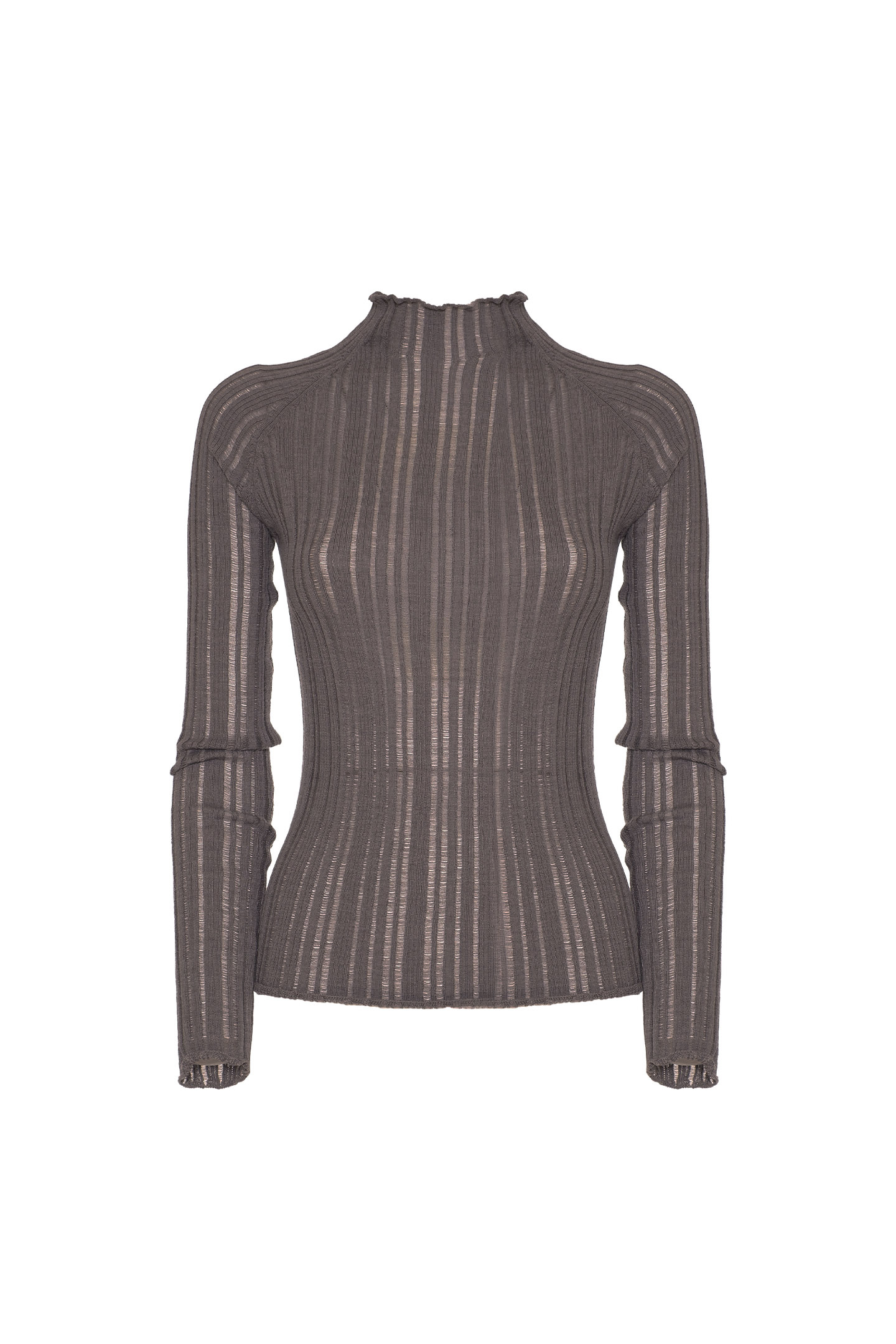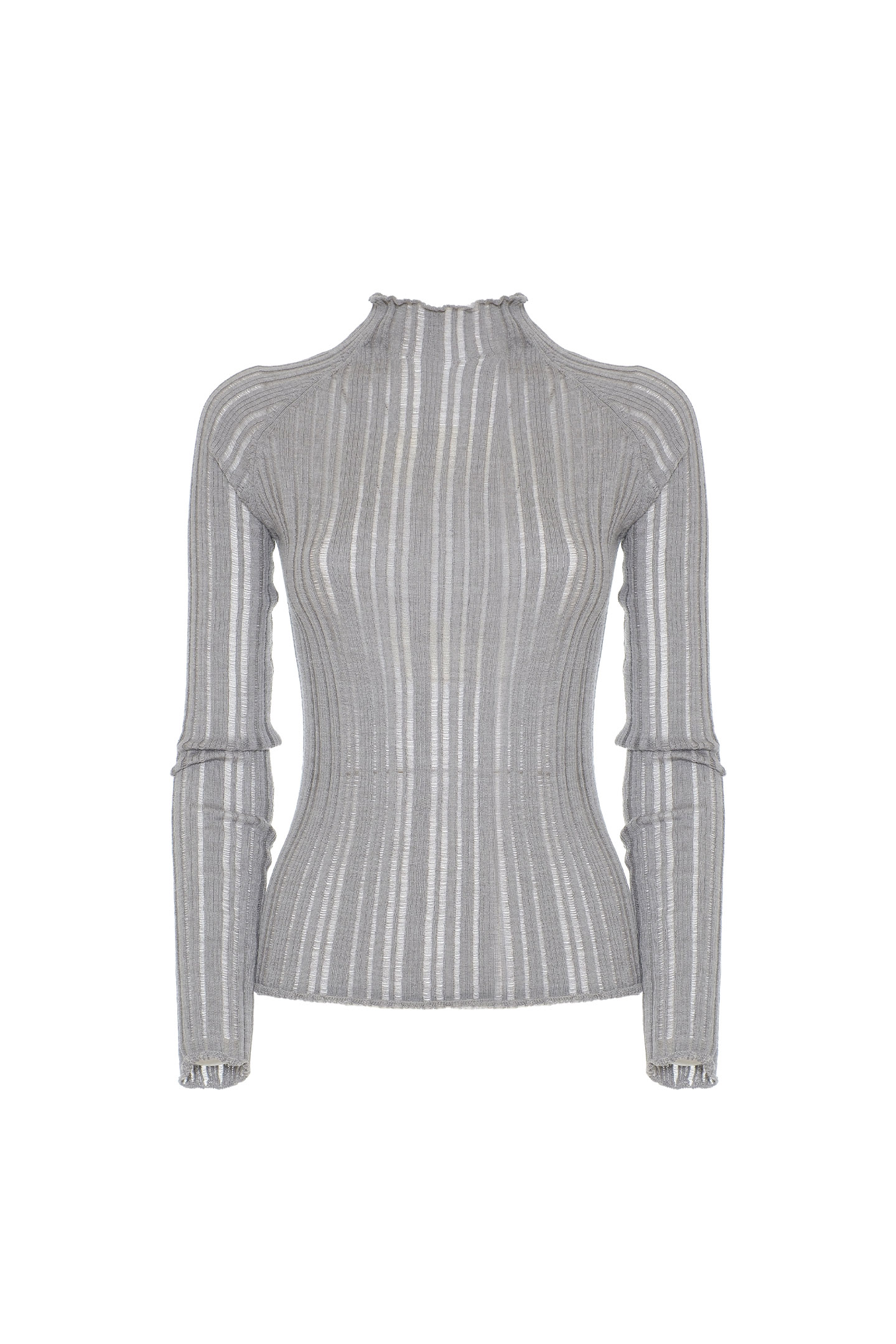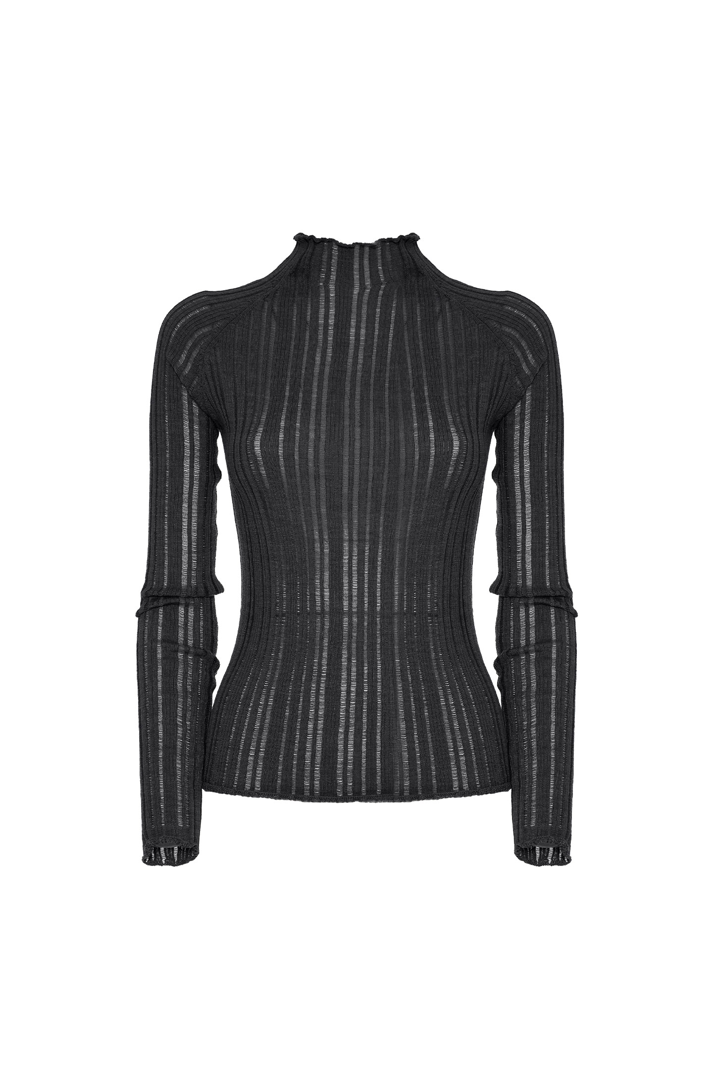 MAGLIA IN MISTO LANA A COSTINE, IN TESSUTO EXTRA FINE SEMI-TRASPARENTE. CARATTERIZZATA DA COLLO A LUPETTO E MANICHE LUNGHE ADERENTI. MODELLO DALLA VESTIBILITA' SLIM FIT E DALLA LINEA ESSENZIALE, IDEALE PER COMPLETARE LOOK DA GIORNO COME LAYER SOTTO A COMPLETI E GIACCHE.