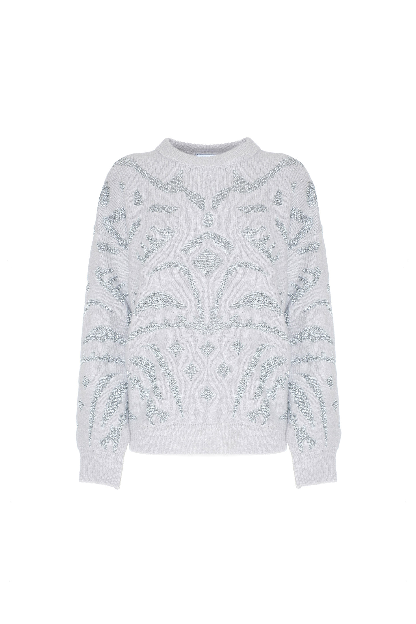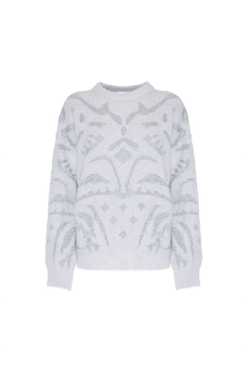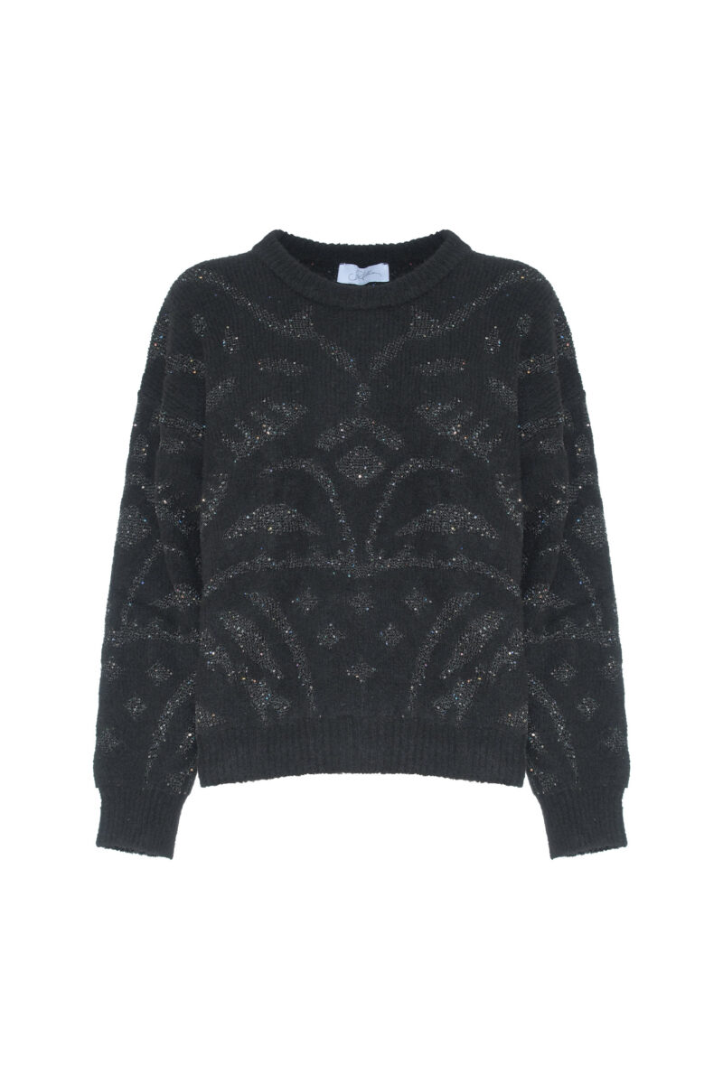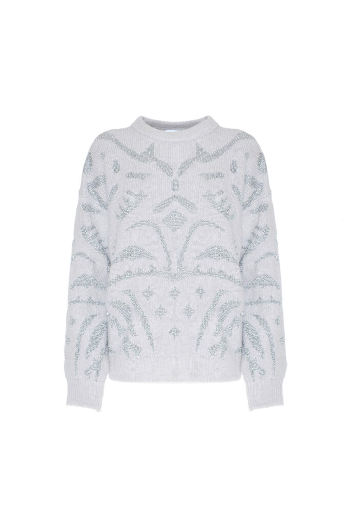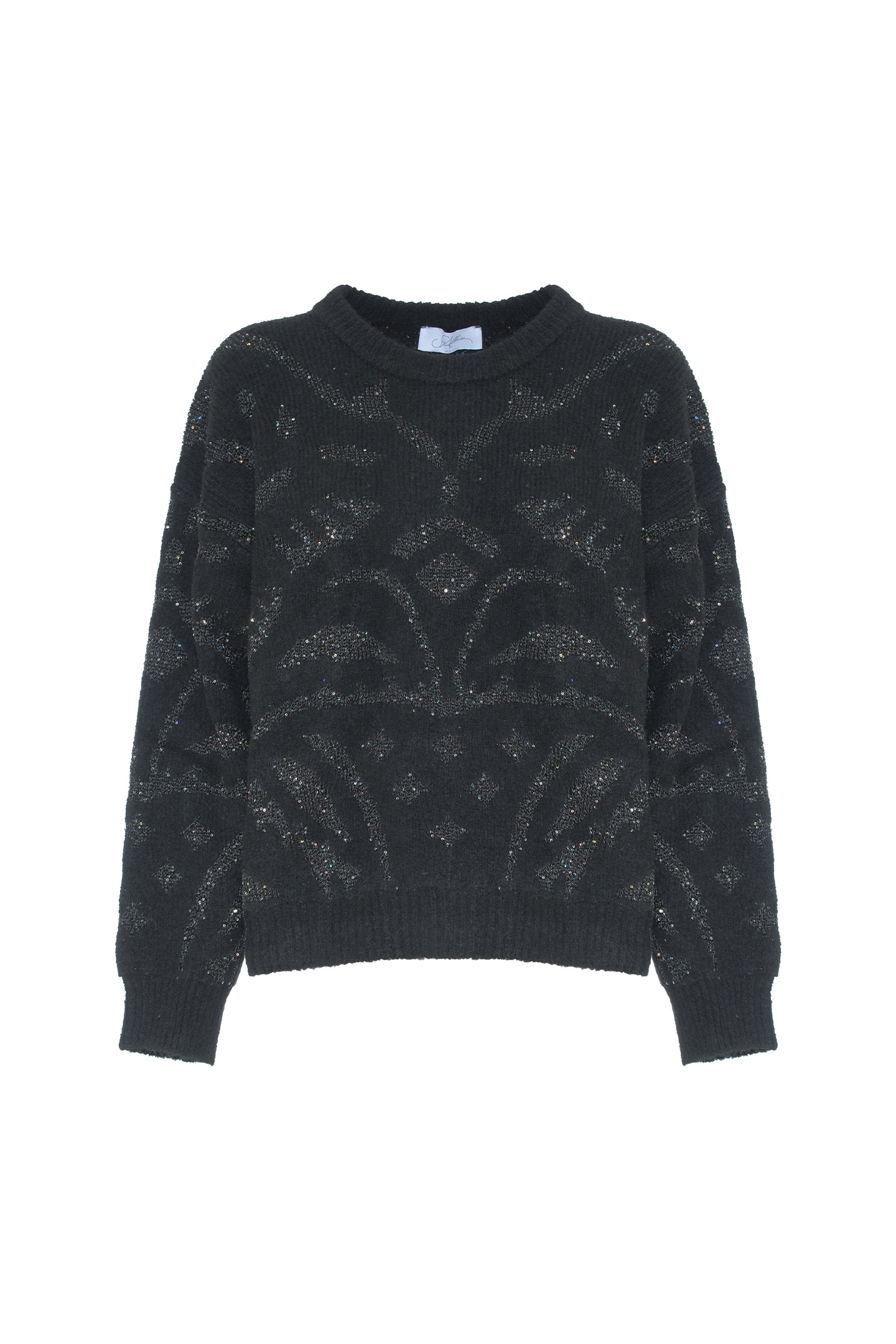 PULLOVER IN FILATO MISTO CON LAVORAZIONE JACQUARD E FILO LUREX.