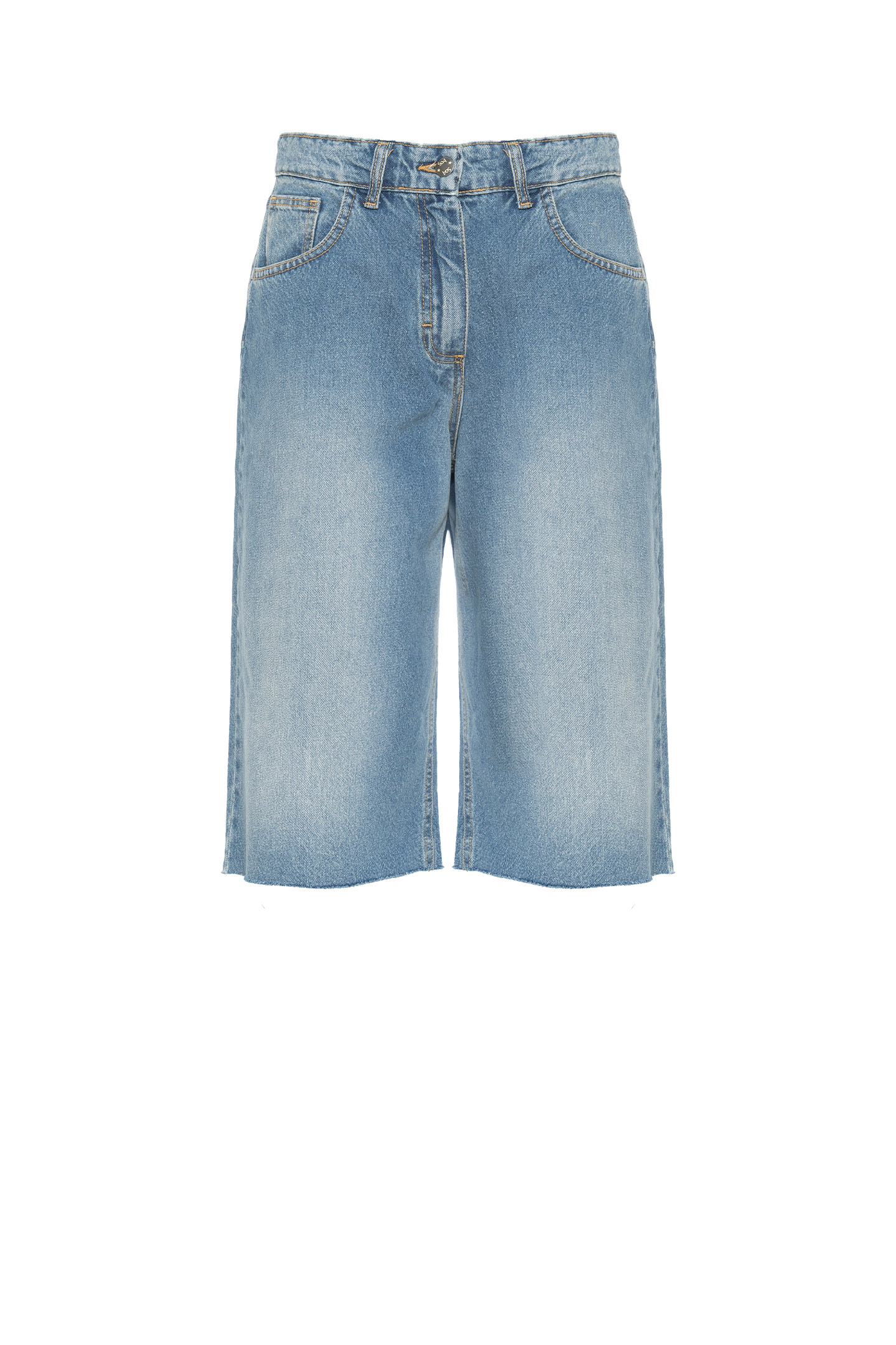 BERMUDA IN DENIM DALLA VESTIBILITÀ RILASSATA E DAL TAGLIO DRITTO. REALIZZATI IN 100% COTONE, PRESENTANO UN LAVAGGIO MEDIO CON SFUMATURE LEGGERE. DESIGN CLASSICO A CINQUE TASCHE E ORLO TAGLIATO VIVO, IDEALE PER LOOK URBAN-CHIC DA CITTÀ. LA MODELLA È ALTA 1.78 M E INDOSSA UNA TAGLIA 42 IT.