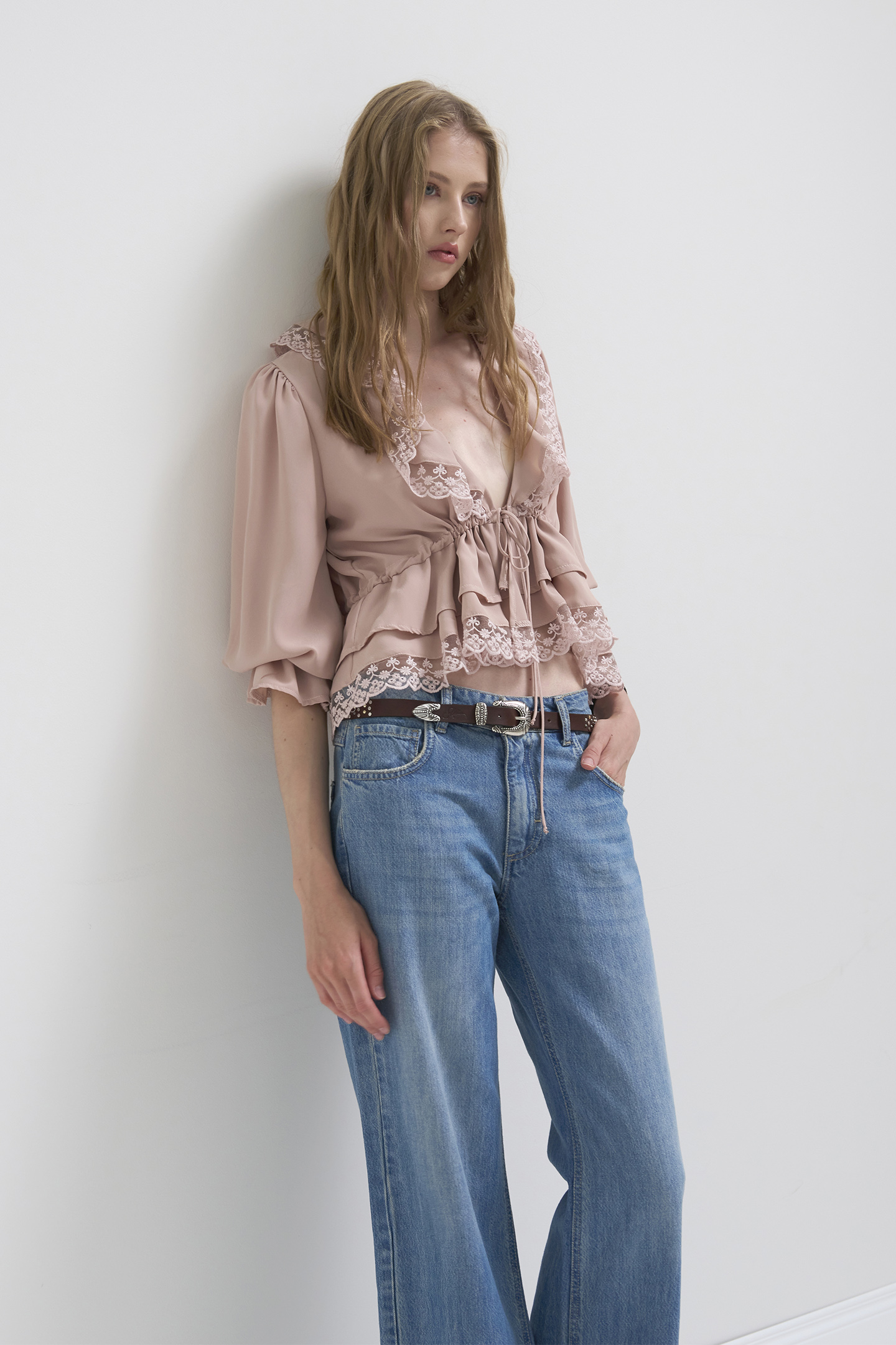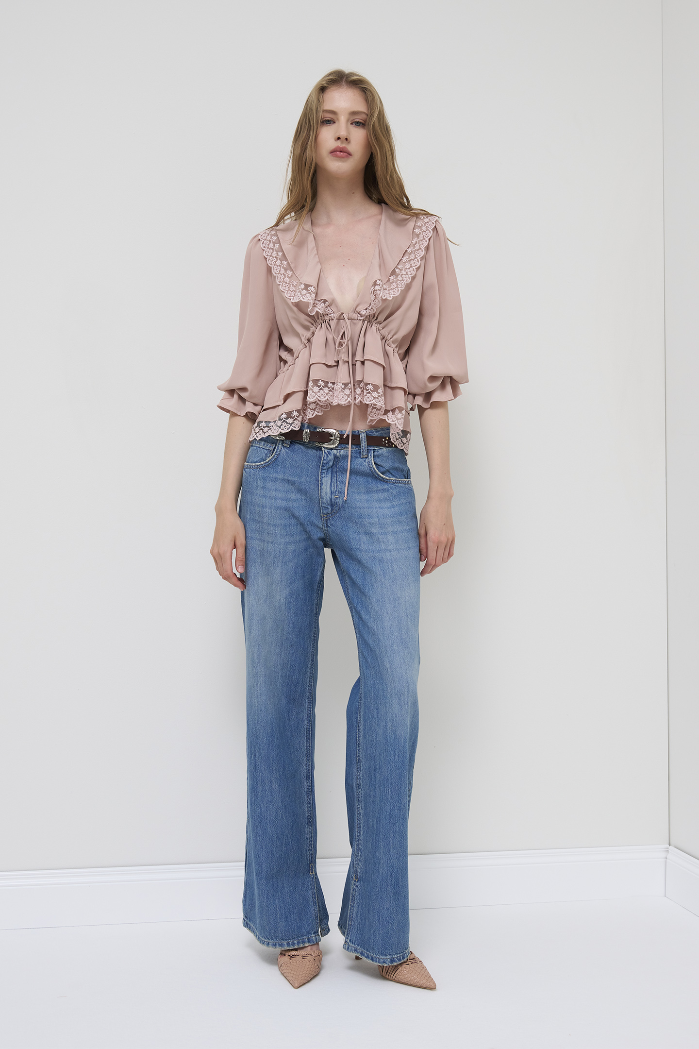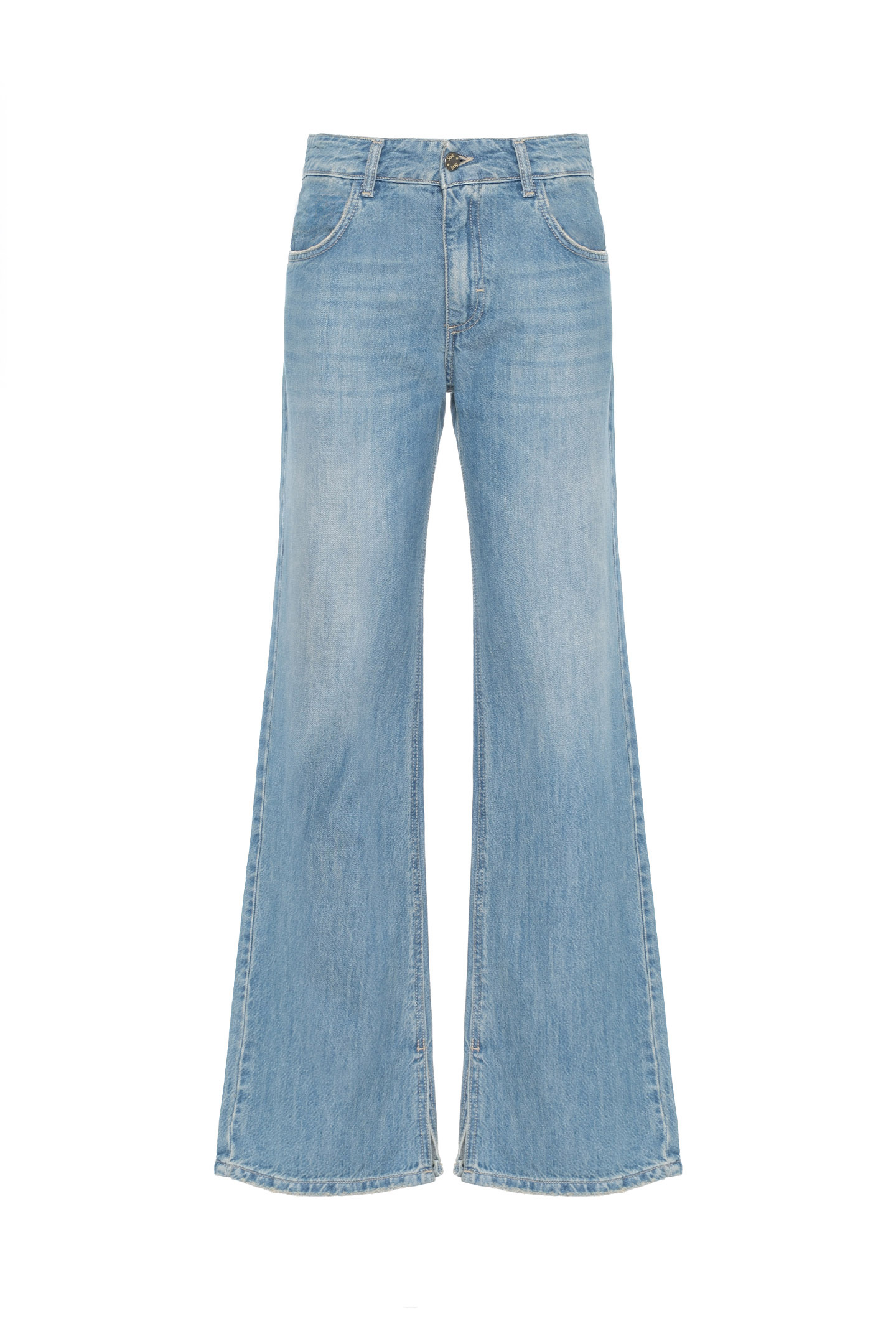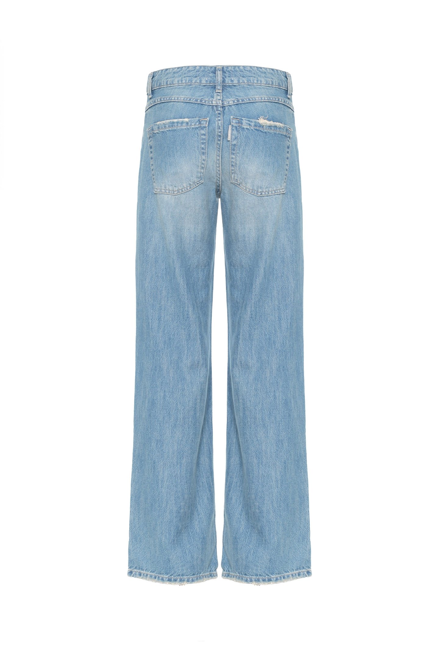 JEANS IN PURO COTONE DAL TAGLIO DRITTO E SPACCHI SUL FONDO GAMBA. LAVAGGIO STONE WASHED AZZURRO MEDIO-CHIARO CON SCHIARITURE. LA SILHOUETTE SI CARATTERIZZA PER UNA VITA MEDIA E UNA LINEA CLASSICA A CINQUE TASCHE. LA MODELLA È ALTA 178 CM E INDOSSA UNA TAGLIA 42 IT.