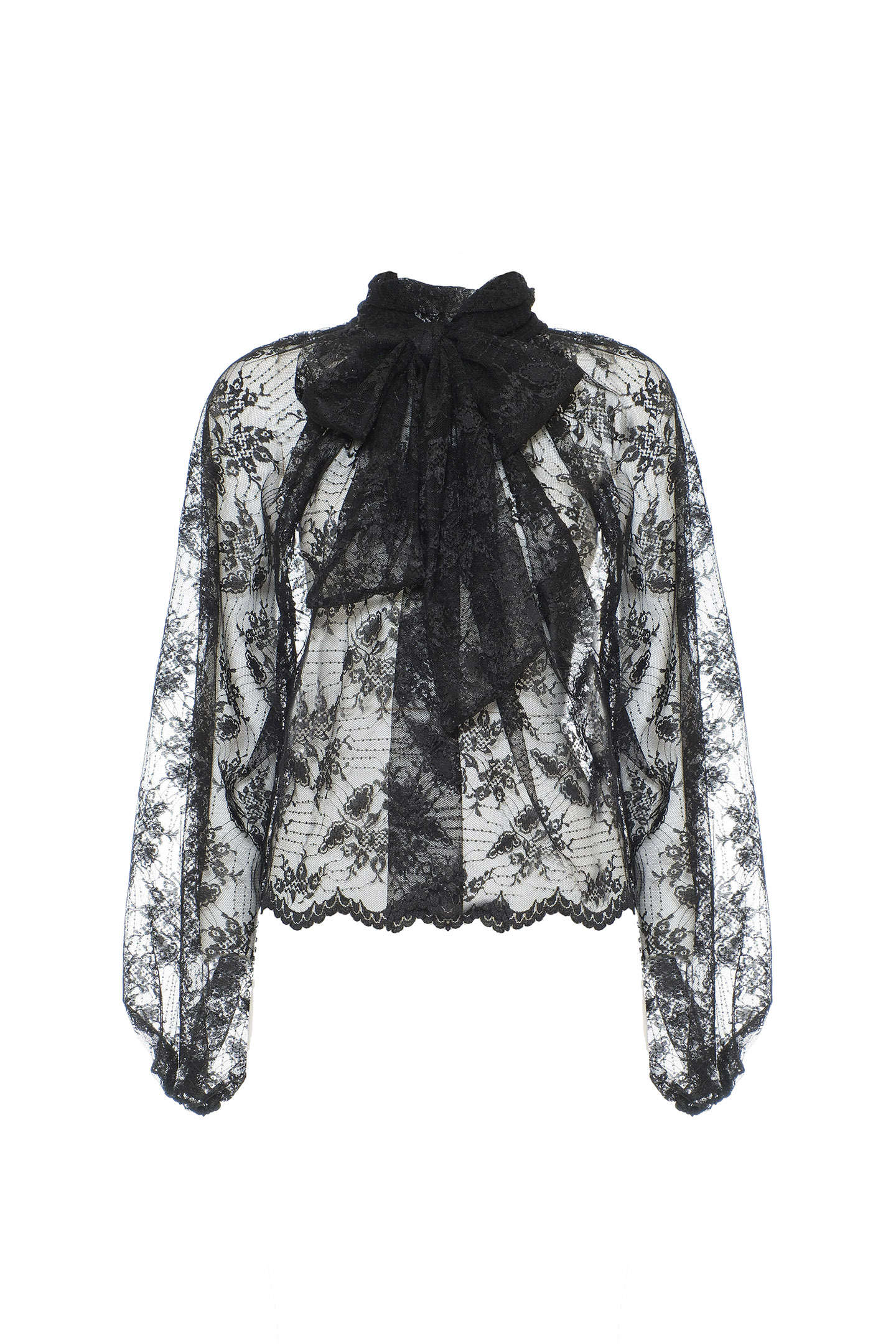 BLUSA IN PIZZO CON COLLO ALTO A SCIARPA E ORLO CON RIFINITURE CON PUNTO SMERLO. SI DISTINGUE PER IL DELICATO PIZZO TRASPARENTE CHE CREA UN SOFISTICATO EFFETTO VEDO NON VEDO. DESIGN A MANICHE LUNGHE AMPIE, COMPLETATE DA UN POLSINO ELASTICIZZATO SUL FONDO, GARANTENDO COMFORT E LIBERTÀ DI MOVIMENTO. VESTIBILITÀ RILASSATA E TAGLIO LEGGERMENTE CROPPED.