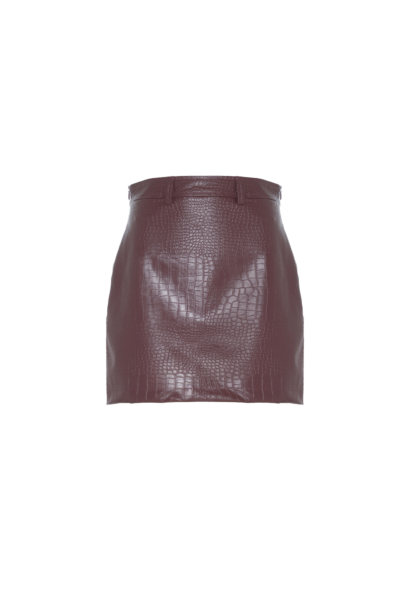 MINI GONNA IN ECO PELLE CON MOTIVO GOFFRATO EFFETTO COCCODRILLO. MODELLO A VITA A VITA ALTA CON PASSANTI PER CINTURA E CHIUSURA LATERALE CON CERNIERA. PRESENTA UNA SILHOUETTE A TUBINO ADERENTE, IDEALE PER LOOK CHIC DAL GIORNO ALLA SERA.