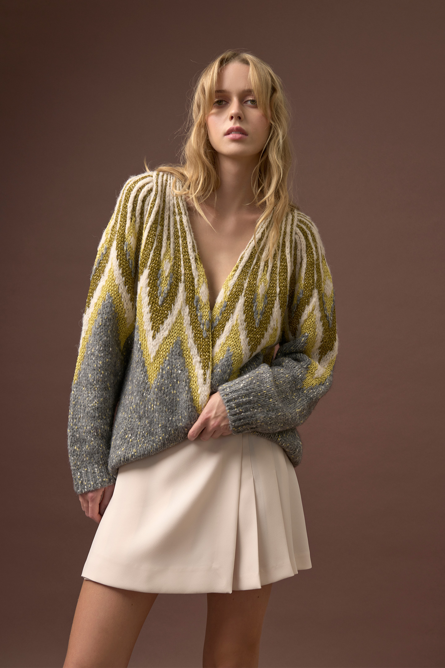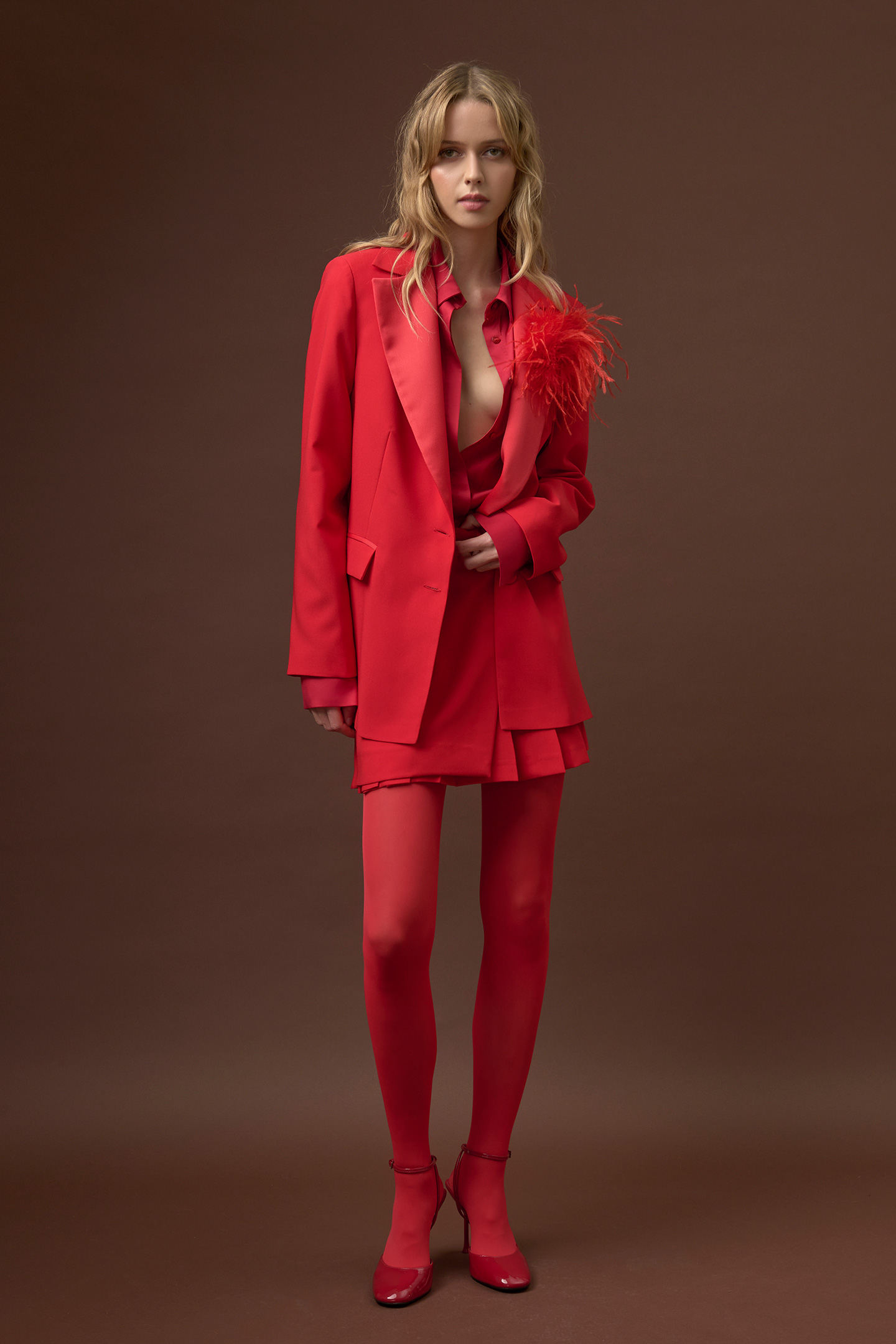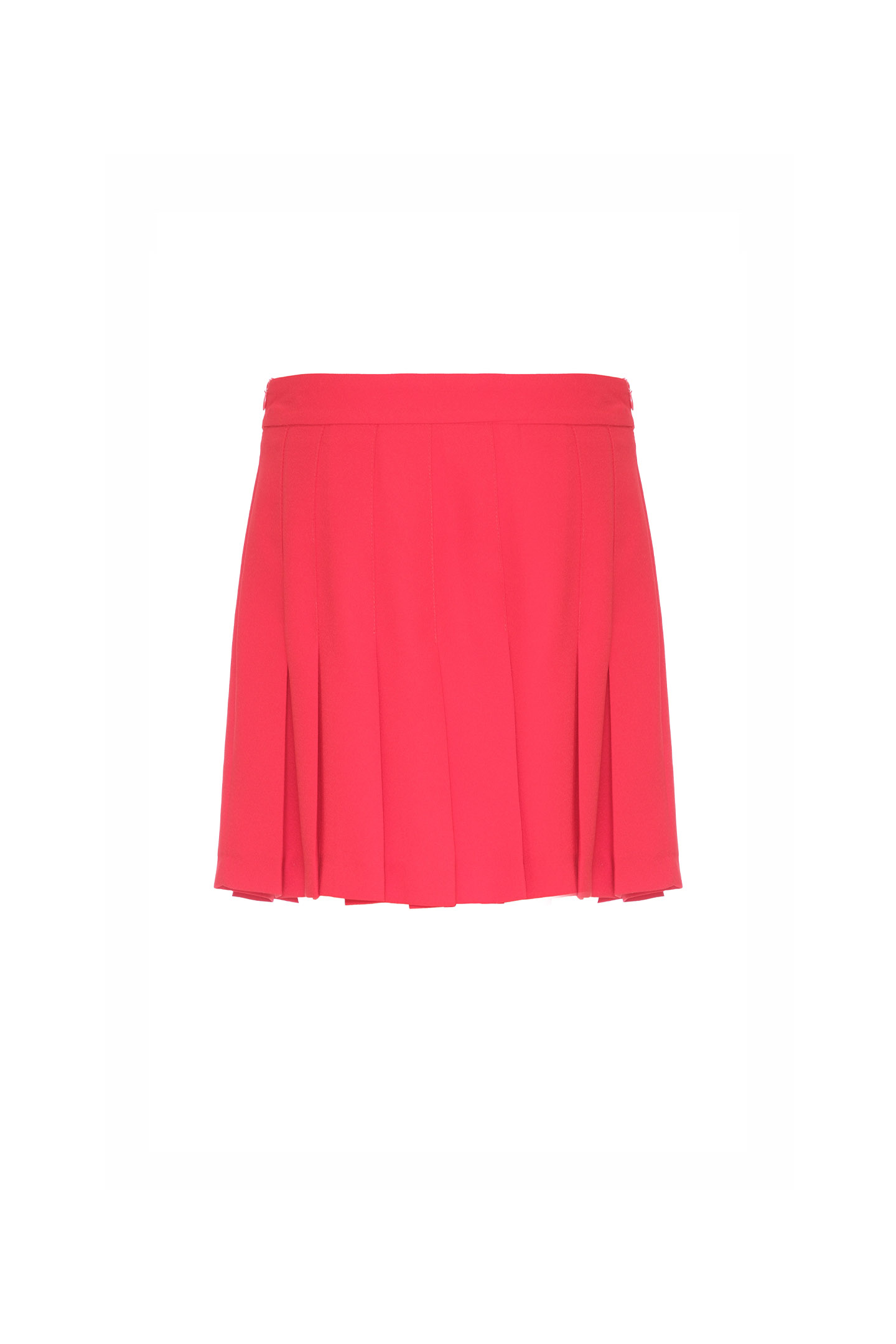MINI GONNA A VITA ALTA DAL DESIGN A PORTAFOGLIO CON PIEGHE. REALIZZATA IN TESSUTO COMPATTO E STRUTTURATO PER UNA SILHOUETTE IMPECCABILE. IDEALE PER UNO STILE PREPPY E CONTEMPORANEO, SI ABBINA CON ELEGANZA A CAMICIE E BLAZER O IN CHIAVE SPORTY-CHIC CON T-SHIRT E SNEAKERS. LA MODELLA È ALTA 1.79 CM E INDOSSA UNA TAGLIA 42 IT.