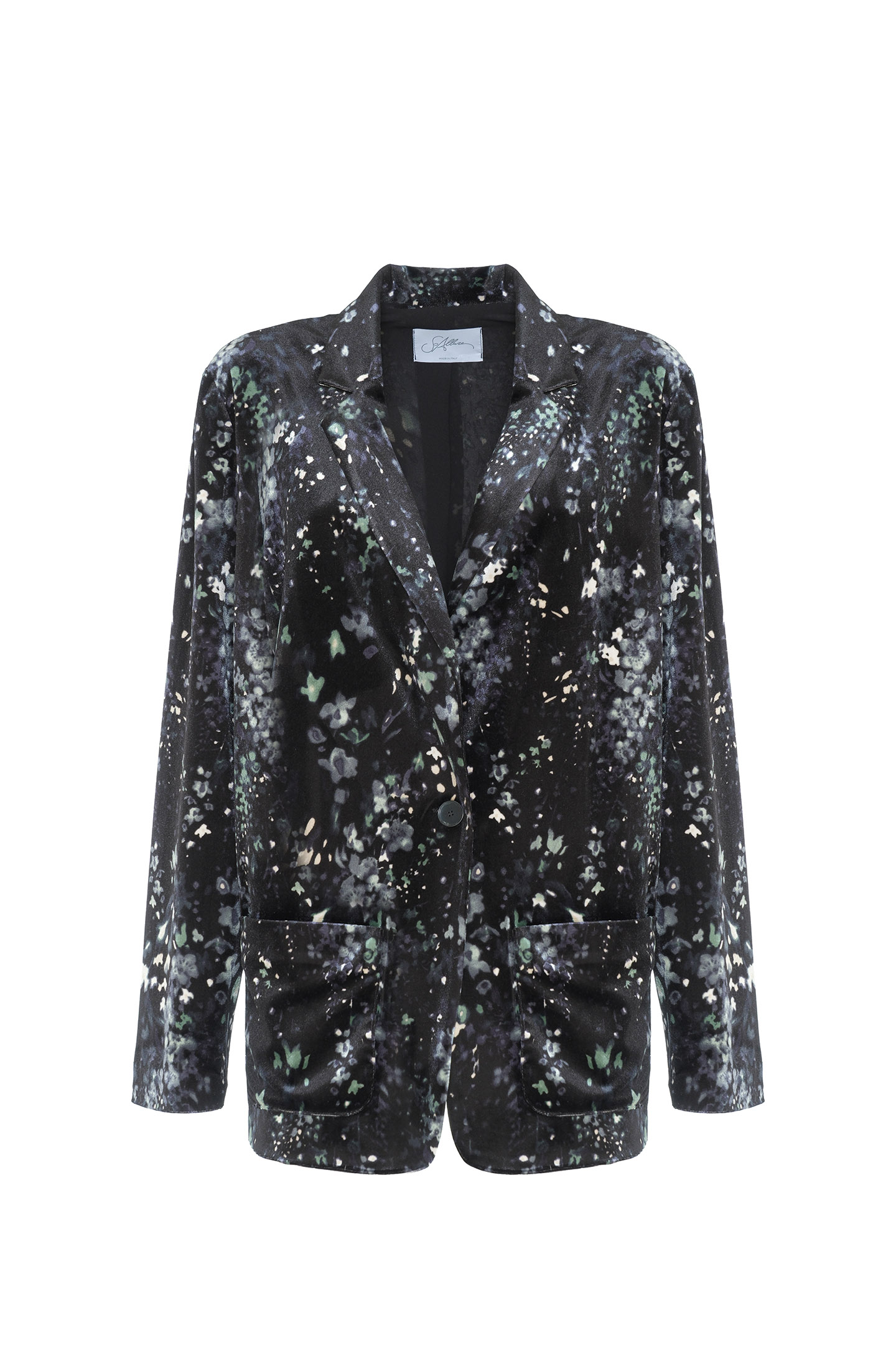 VELVET JACKET WITH FLORAL PRINT AND CLASSIC LAPEL.