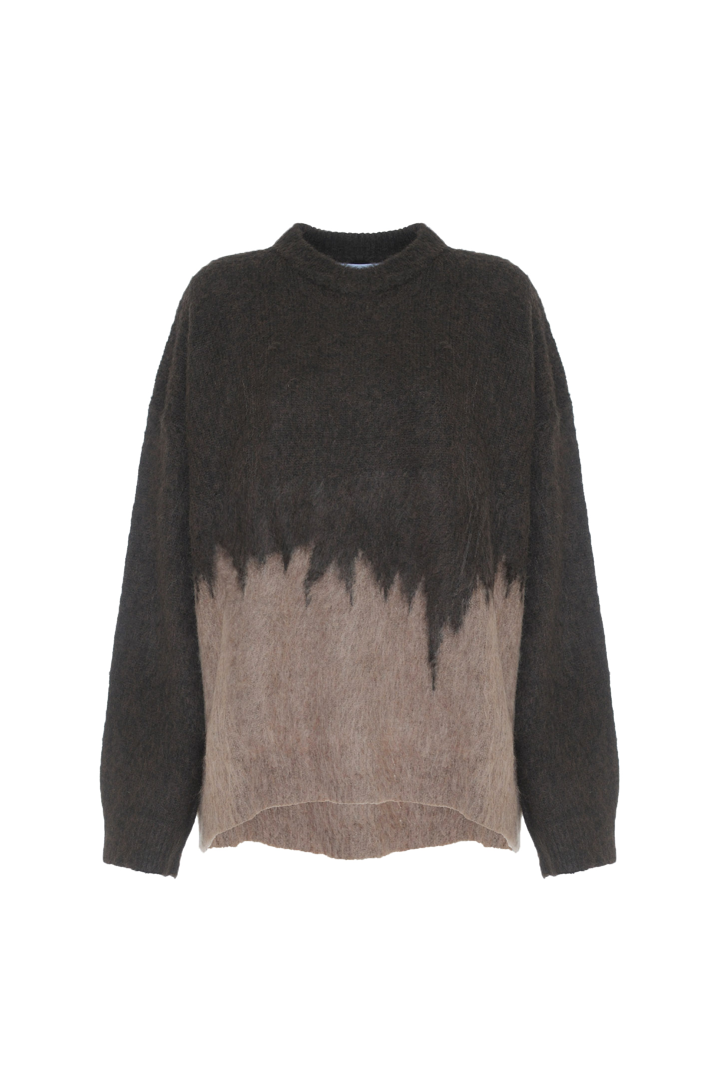 PULLOVER IN BRUSHED WOOL BLEND YARN WITH DÉGRADÉ EFFECT. OVERSIZED DESIGN WITH DROPPED SHOULDERS AND CLASSIC CREW NECK. THE SOFT, LIGHTWEIGHT TEXTURE WRAPS YOU IN COMFORT AND WARMTH, PERFECT FOR LAYERED LOOKS. A VERSATILE GARMENT THAT PLAYS ON CONTRASTS IN VOLUME, IDEAL FOR A RELAXED, CONTEMPORARY STYLE.