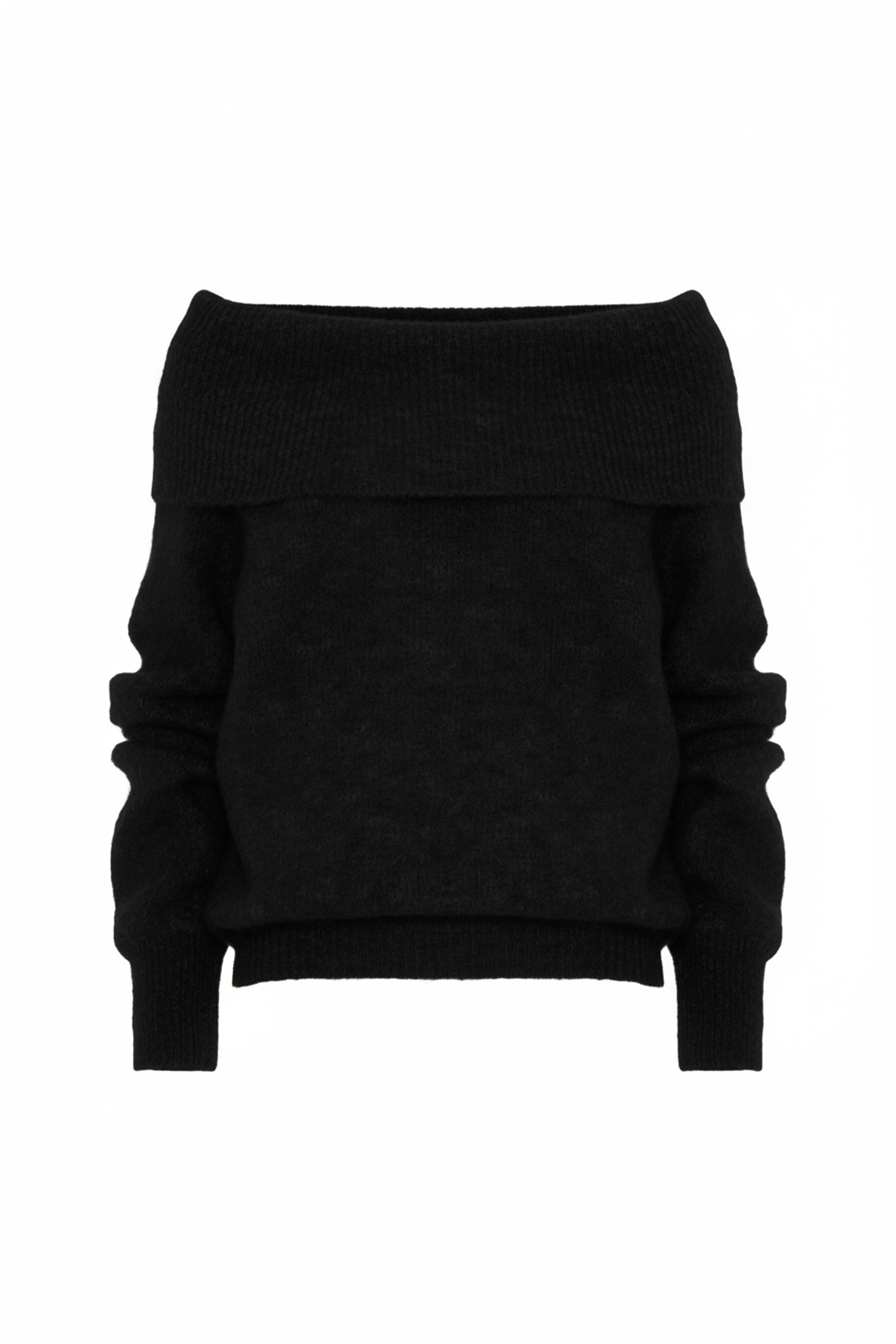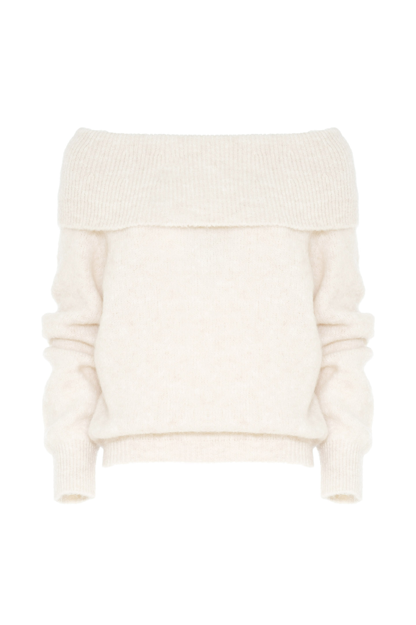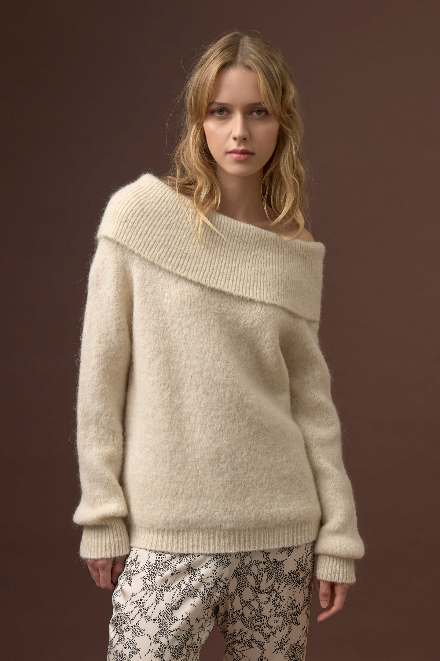 SHOULDER-DISCOVERING BOAT NECK DESIGN SOFT WOOL MIXED YARN PULLOVER. IT FEATURES A SOFT, RELAXED FIT AND RIBBED TRIM. A SOFT AND COMFORTABLE GARMENT, IDEAL FOR ELEVATING CASUAL-CHIC EVERYDAY LOOKS. THE MODEL IS 1.79 CM TALL AND WEARS A SIZE S.