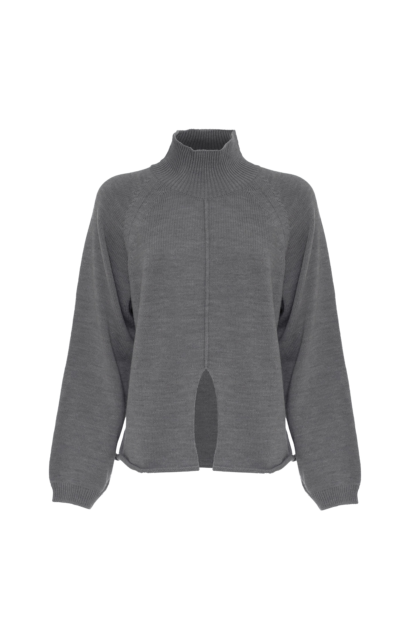 WOOL BLEND SHAVED YARN PULLOVER WITH HIGH RIBBED COLLAR. SOFT DESIGN WITH RAGLAN SLEEVES AND CLEAN CUT ON THE FRONT THAT ADDS A CONTEMPORARY TWIST. FINISHED WITH RAW CUT BOTTOM. A VERSATILE MUST-HAVE, PERFECT FOR REDEFINING INFORMAL LOOKS WITH STYLE.