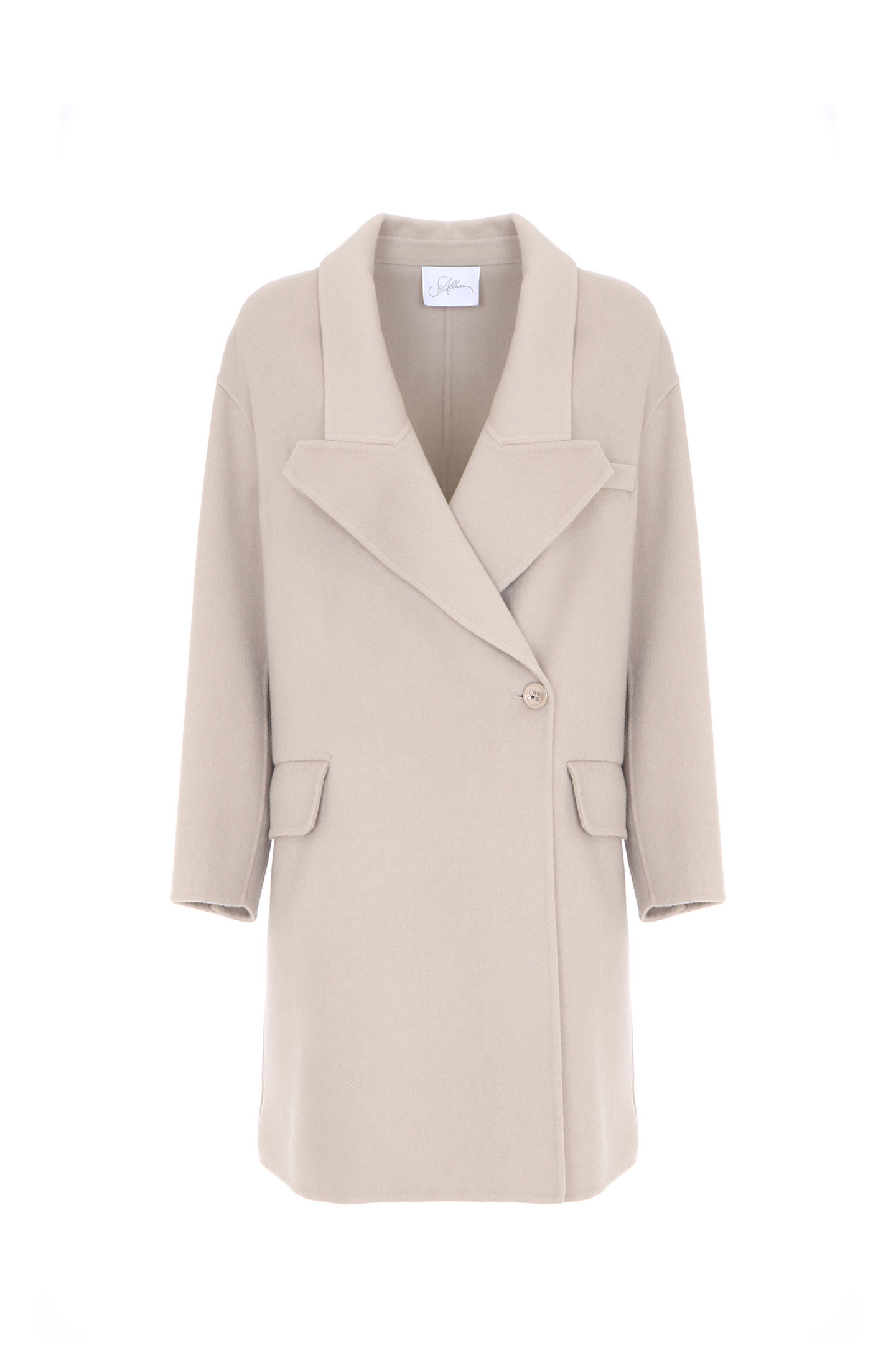100% DOUBLE WOOL CLOTH COAT WITH CUT LAPELS.