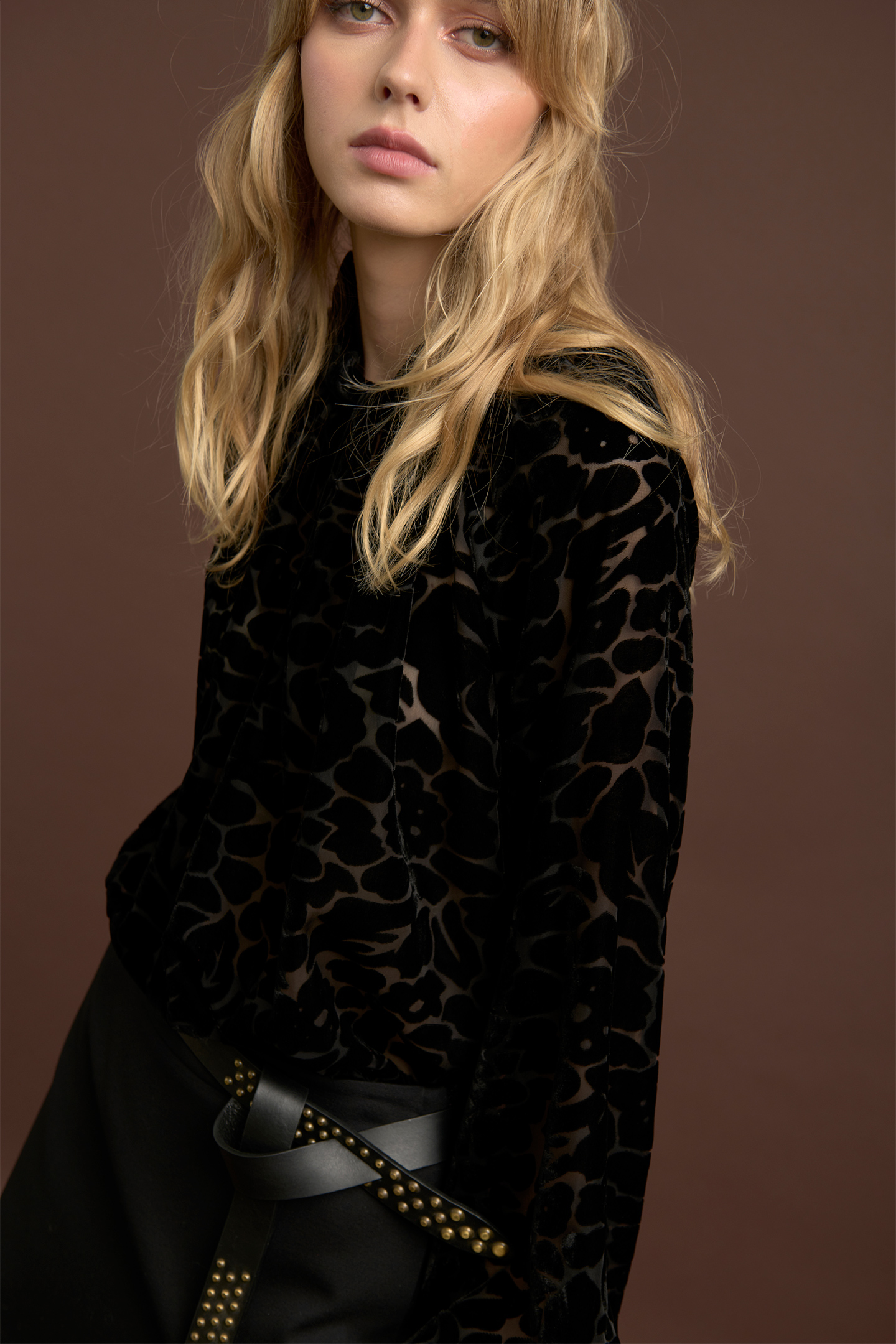 DEVORE’ VELVET BLOUSE WITH ABSTRACT PRINT.