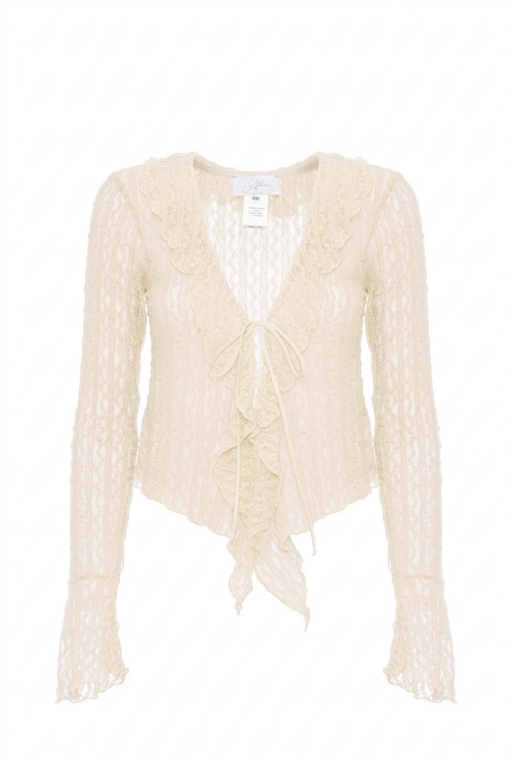 FEATURING THIN LACES AND LONG, FITTED SLEEVES FINISHED WITH FLARED CUFFS.