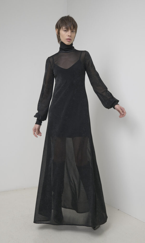 LONG JERSEY DRESS WITH SCARF COLLAR