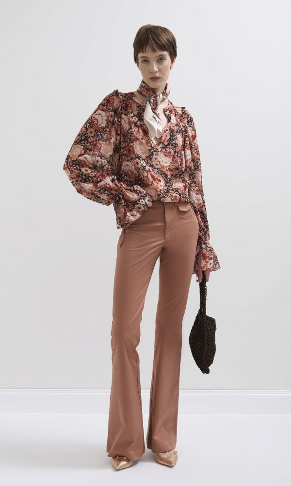 A SOFT, FEMININE BLOUSE, MADE FROM A LIGHTWEIGHT, SILKY-FEEL FABRIC. THE DESIGN FEATURES A DRAPED PATTERN ON THE ROUND NECKLINE AND A KEY-SHAPED DETAIL WITH A BUTTON CLOSURE AT THE BACK. THE LONG SLEEVES ARE SLIGHTLY FULLY FITTED AND Gathered at the wrists WITH ELASTIC CUFFS FOR A FLUFFY, AIRY EFFECT. A PERFECT PIECE FOR OFFICE LOOKS OR SPECIAL OCCASIONS. THE MODEL IS 1.78 M TALL AND WEARS A SIZE 42.