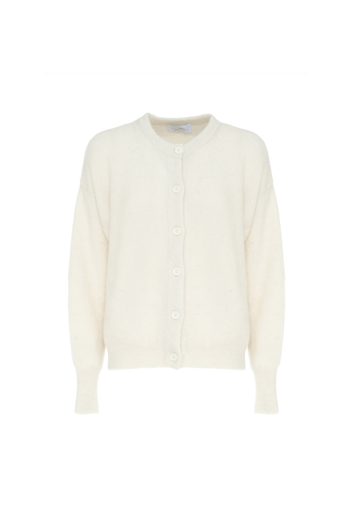WIDE AND COMFORTABLE CARDIGAN MADE FROM SOFT ALPACA BLEND KNIT. FEATURING A ROUND NECKLINE, LONG SLEEVES AND TONE-ON-TONE LOGO BUTTON CLOSURE. COMFORTABLE FIT WITH DROP SHOULDERS, IDEAL FOR RELAXED LOOKS AND LAYERING. PERFECT FOR PAIRING WITH T-SHIRTS, BLOUSES OR SHIRTS FOR A CASUAL BUT POLISHED STYLE.