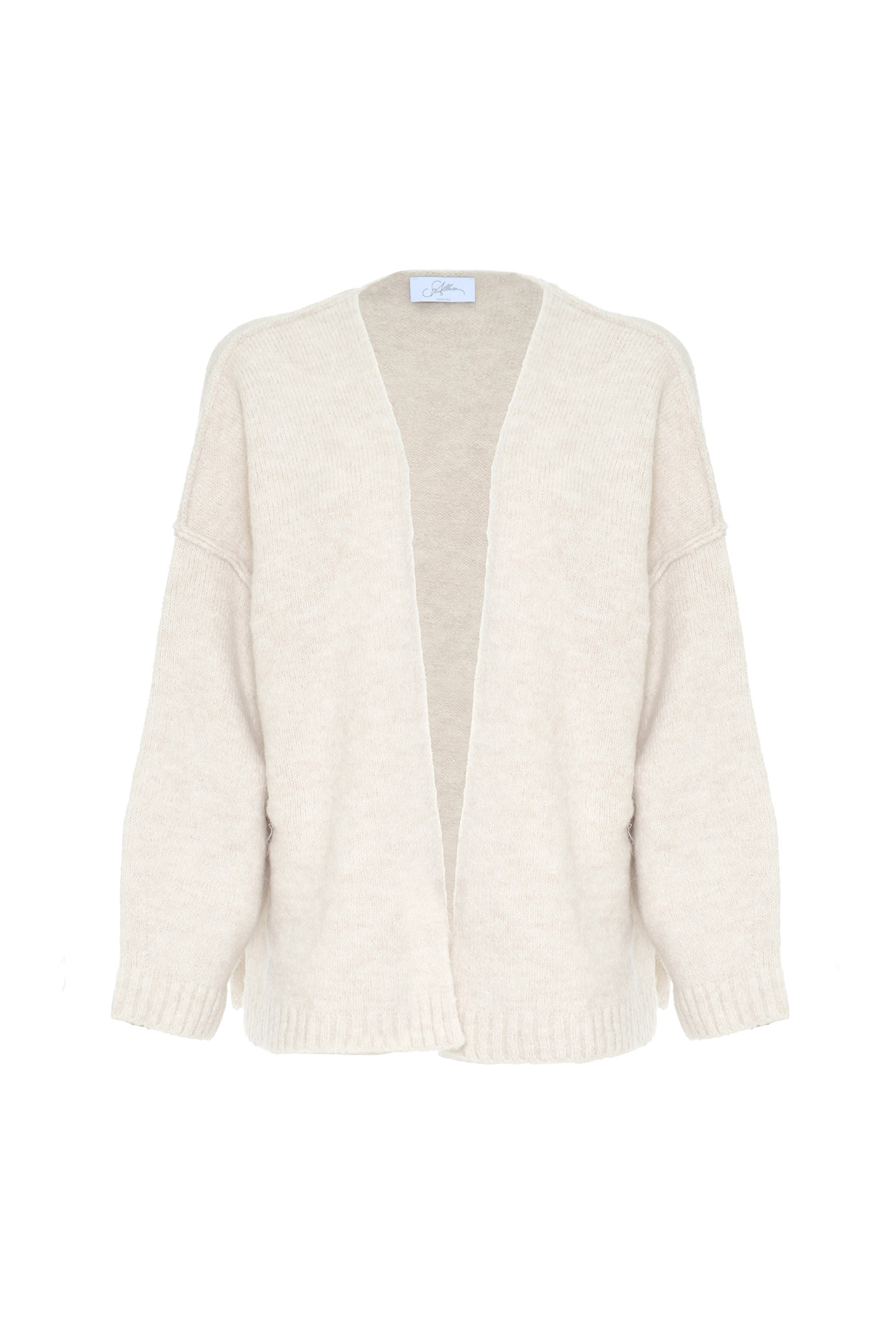 CARDIGAN MADE FROM SOFT WOOL BLEND YARN WITH THIN LUREX THREADS THAT GIVE A DELICATE SHIMMERING EFFECT.