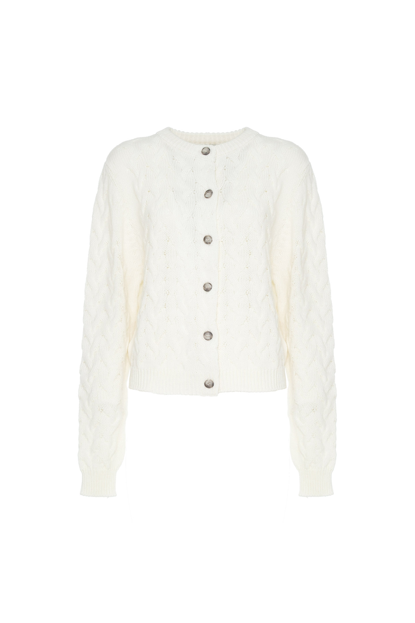 CARDIGAN IN WOOL-BLEND YARN WITH CABLE KNIT DETAIL.
