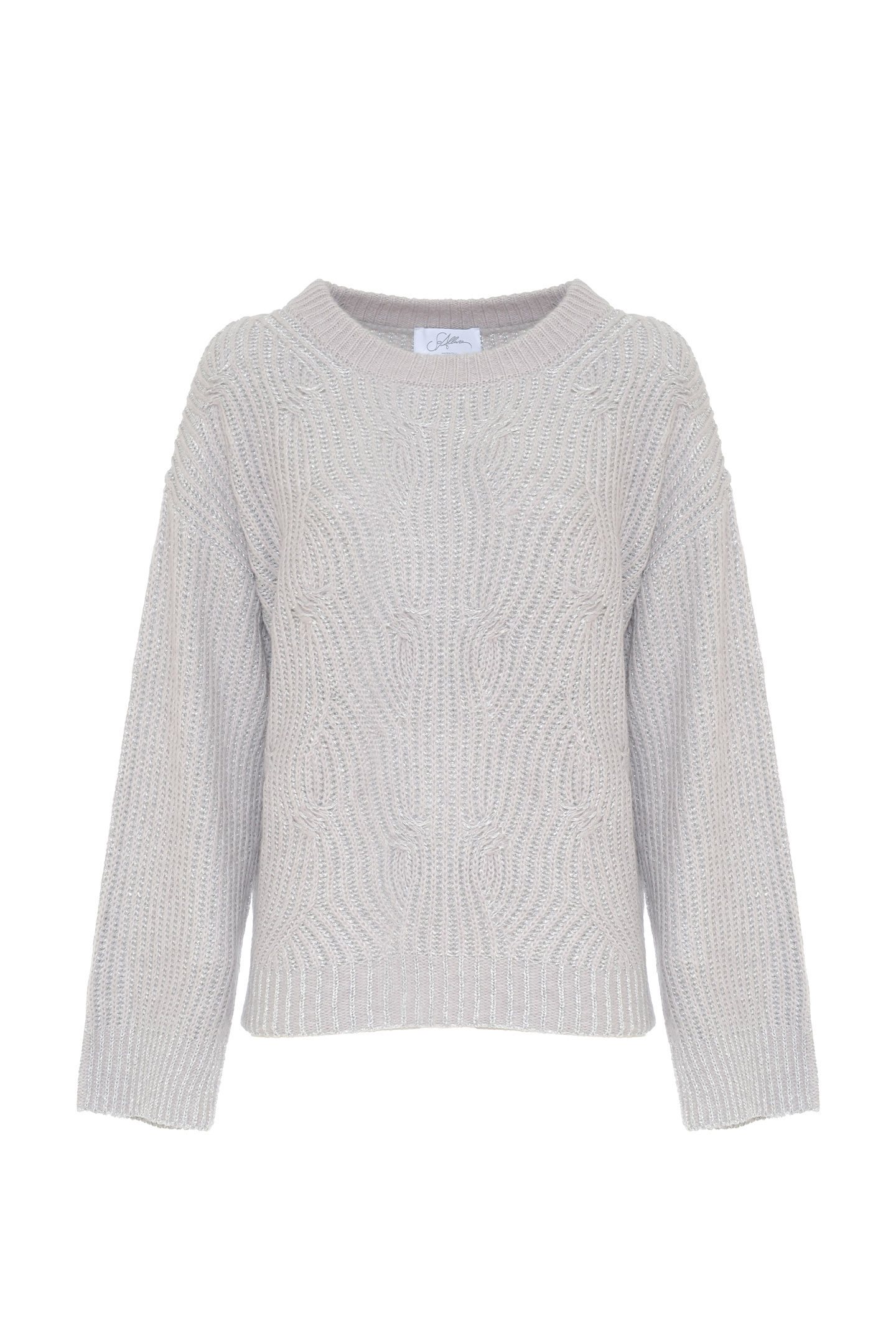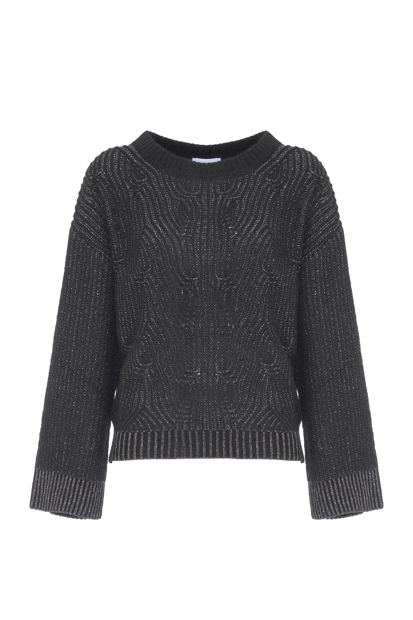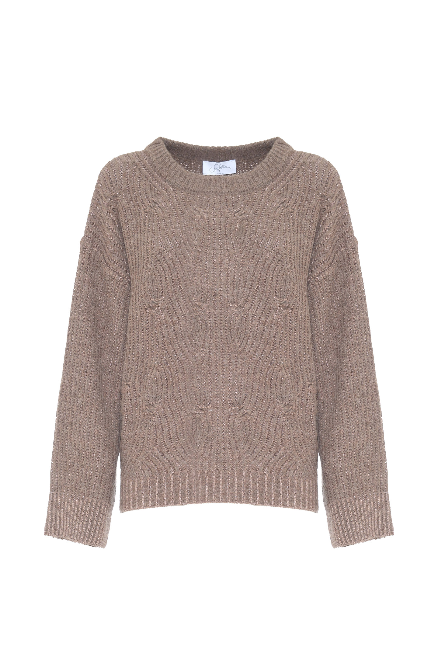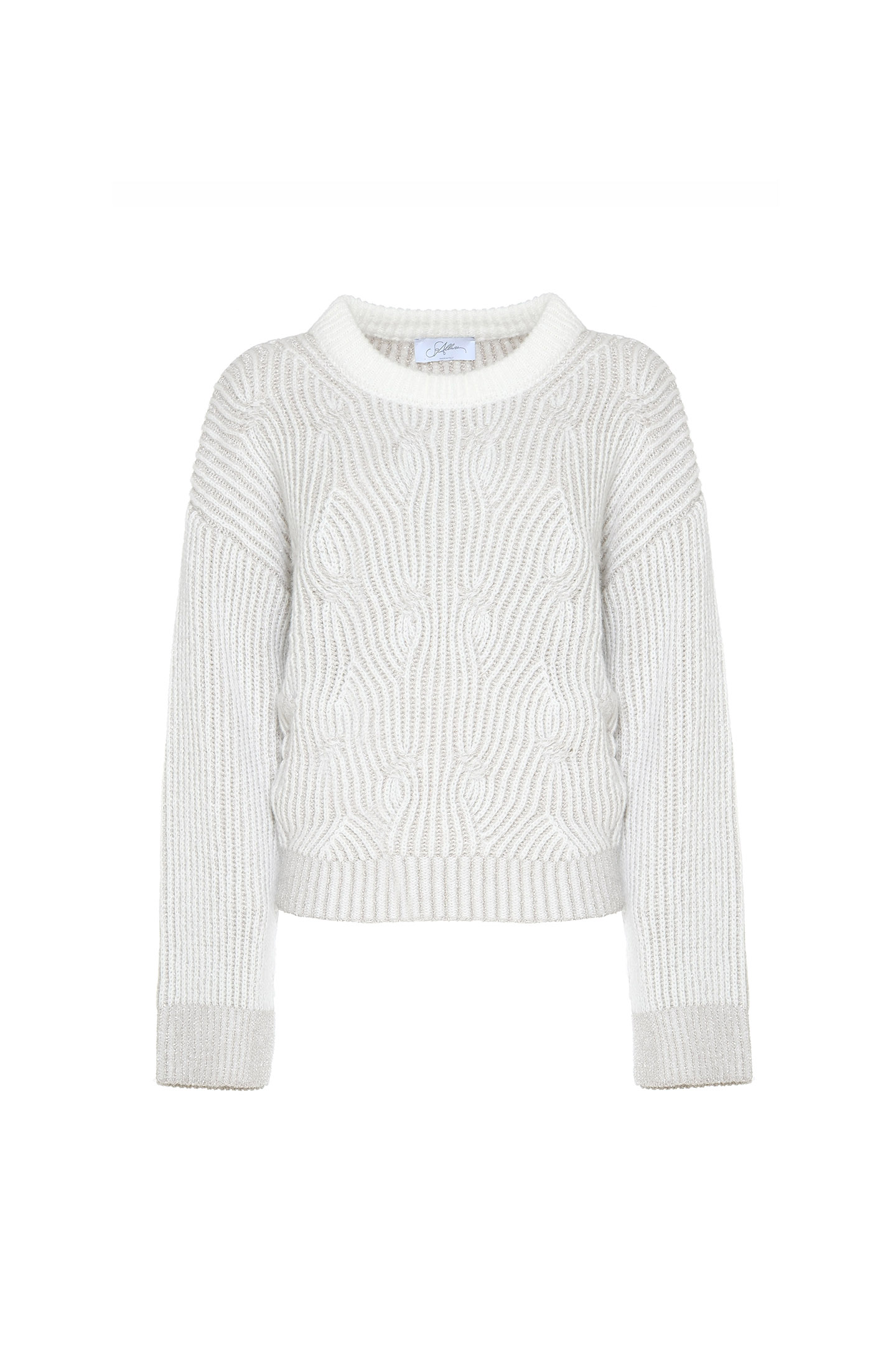 KNITTED PULLOVER WITH INTERLACED WORKING, ENHANCED BY LUREX THREADS THAT ADD A SHINY TOUCH.