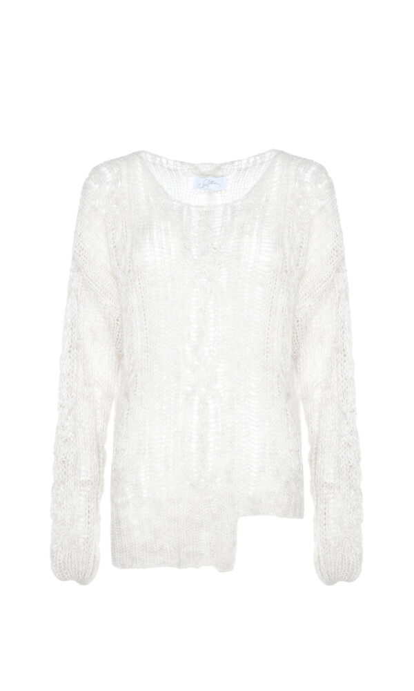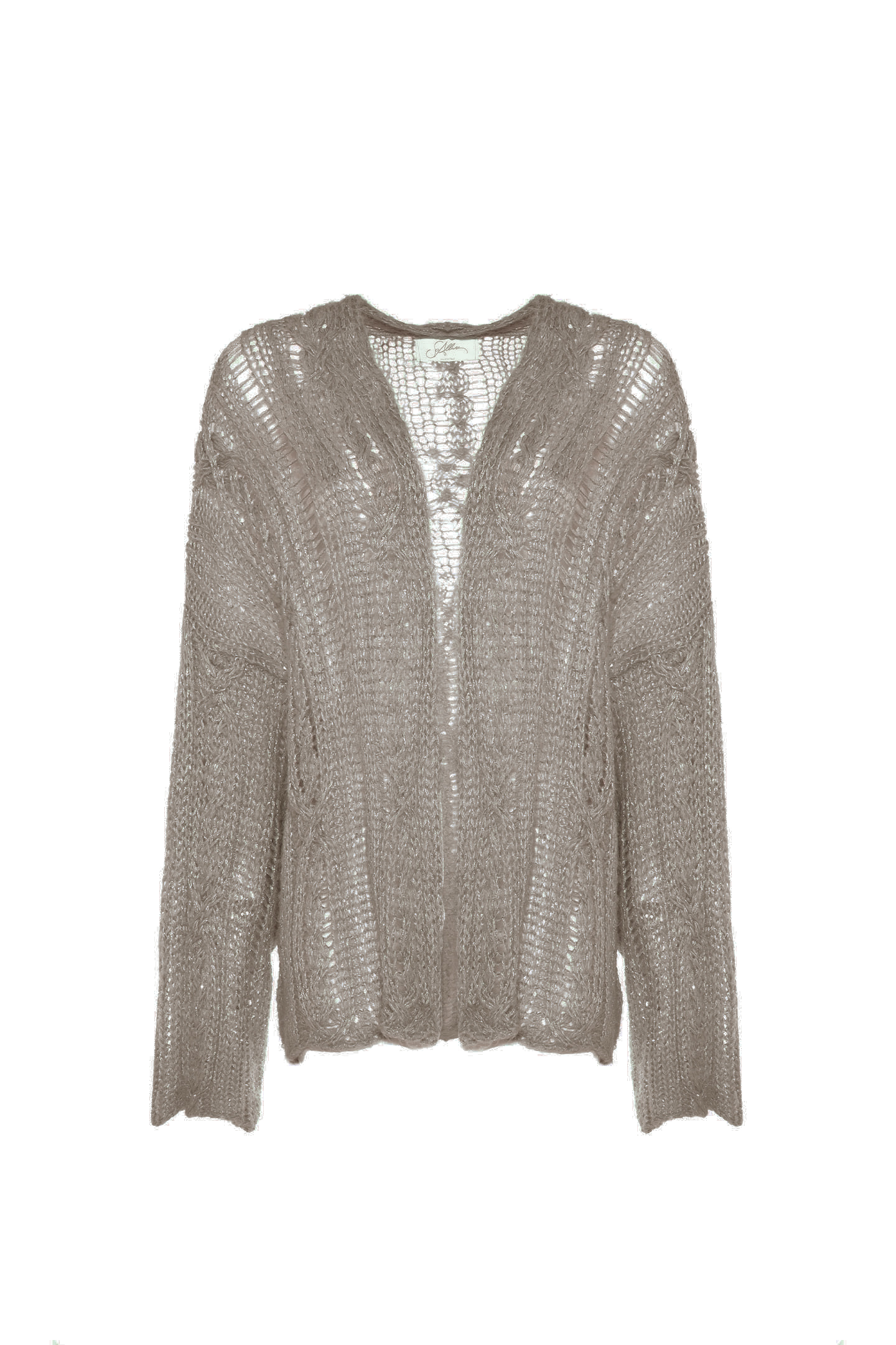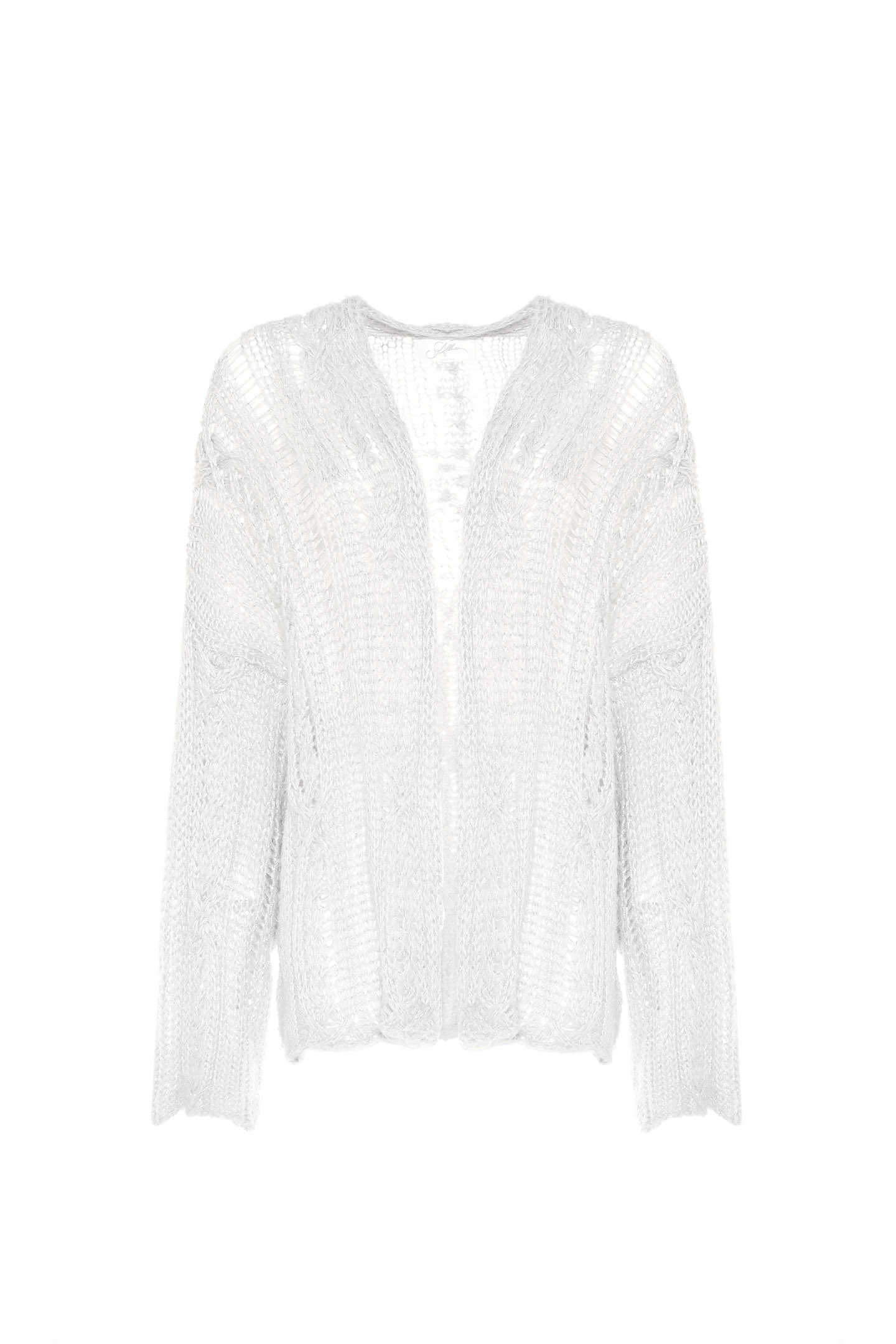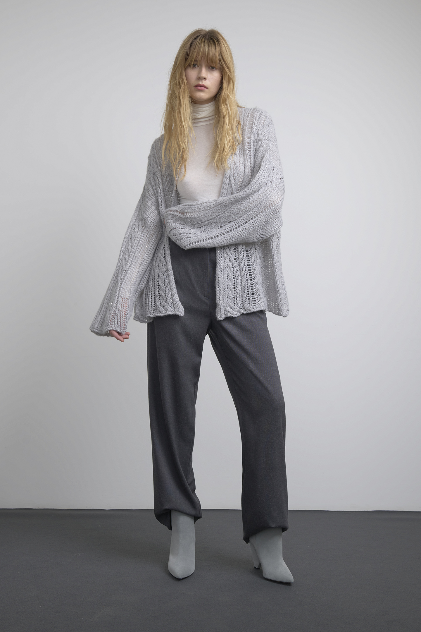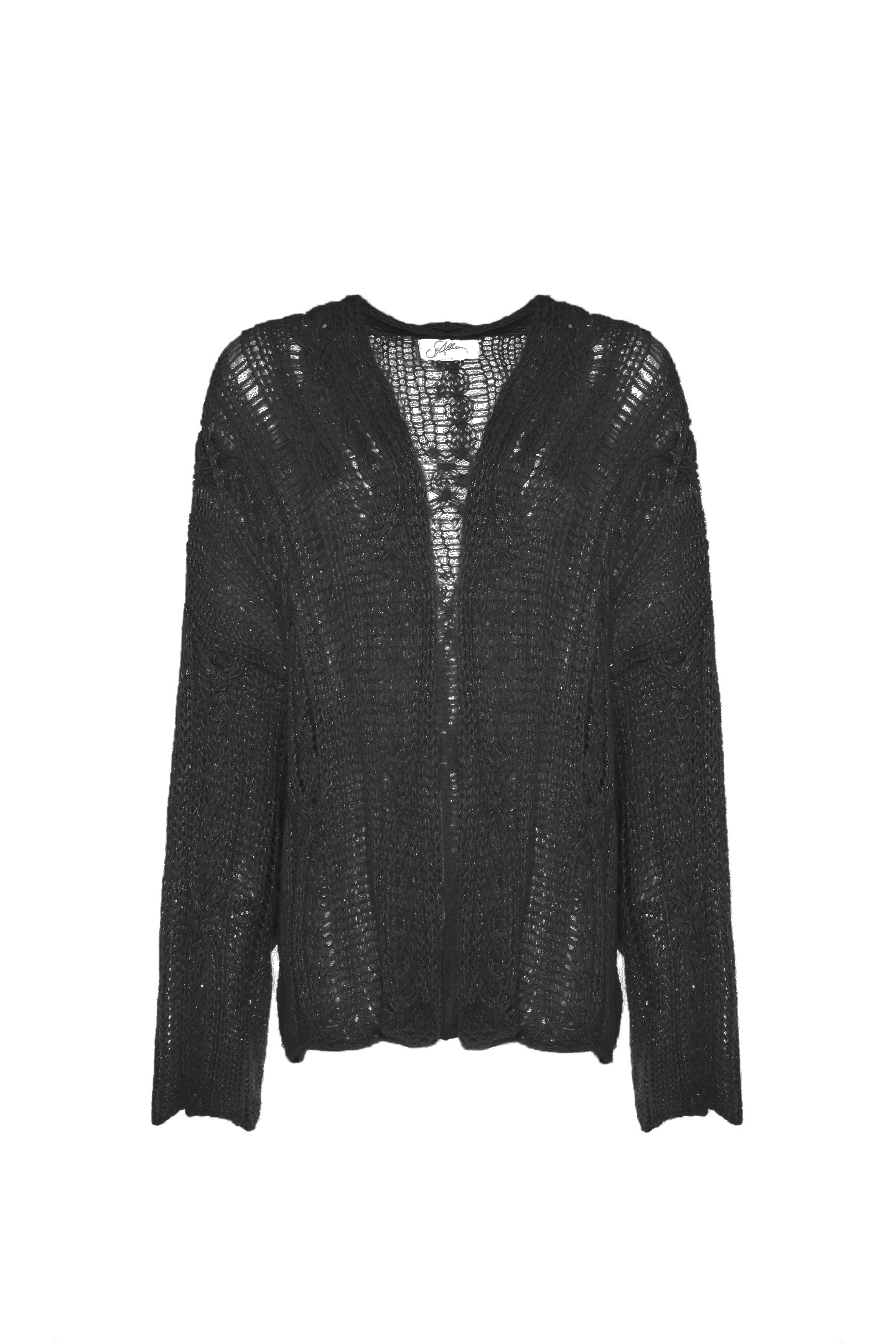 WOOL BLEND CARDIGAN WITH CABLE KNIT AND MESH STITCH PATTERN. FEATURING A THIN STRING OF SEQUINS IN THE WEAVE. OVERSIZED FIT WITH WIDE SLEEVES AND DROP SHOULDERS FOR A RELAXED AND CASUAL STYLE.