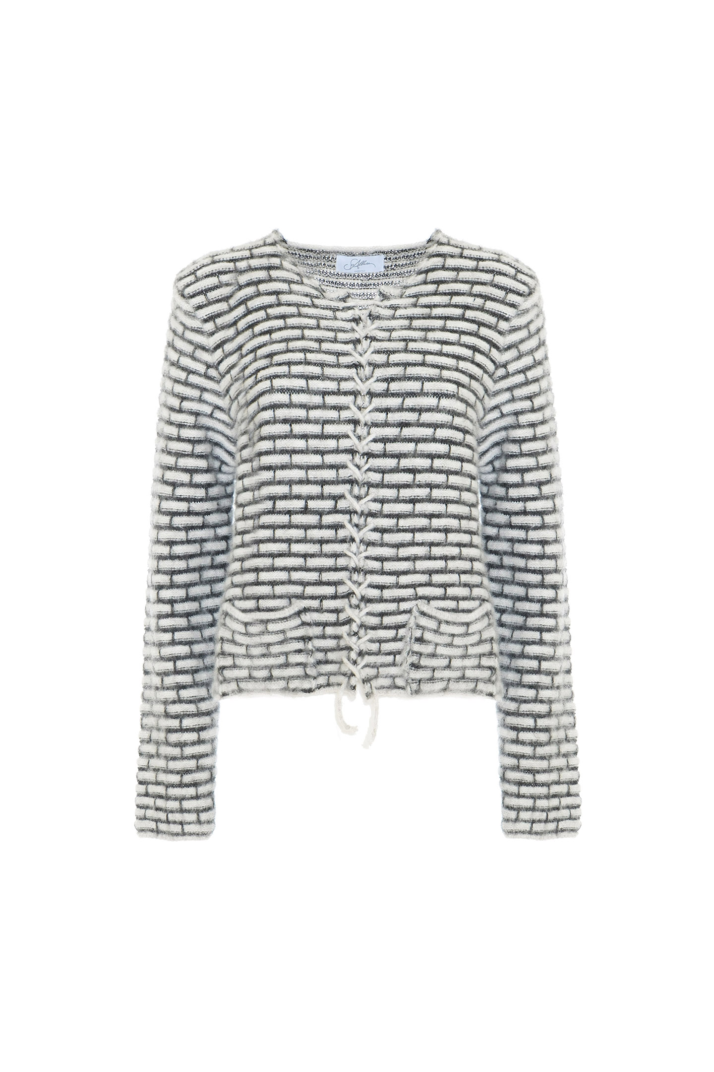 CARDIGAN IN BRUSHED WOOL BLEND YARN WITH CHECKED JACQUARD PATTERN.