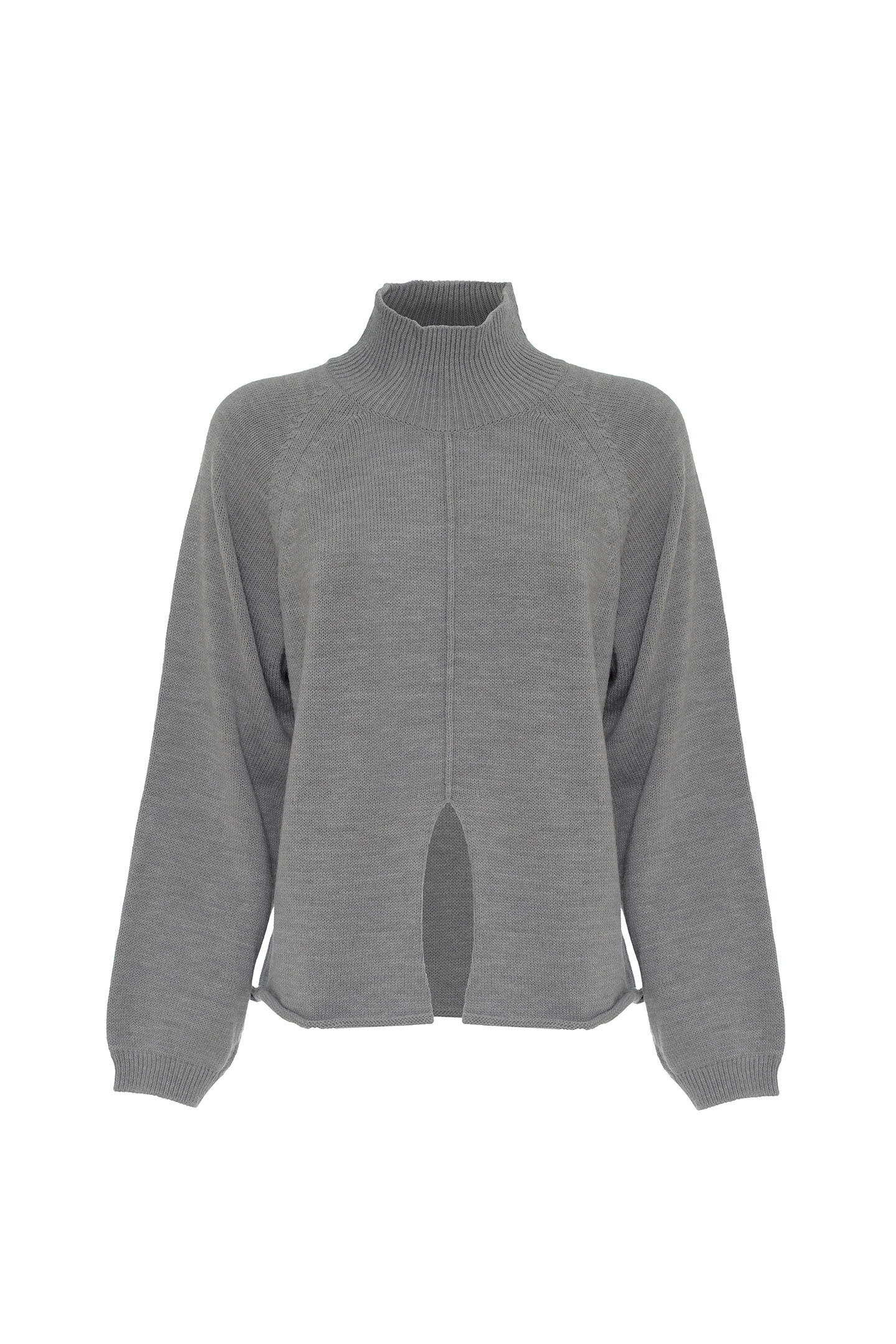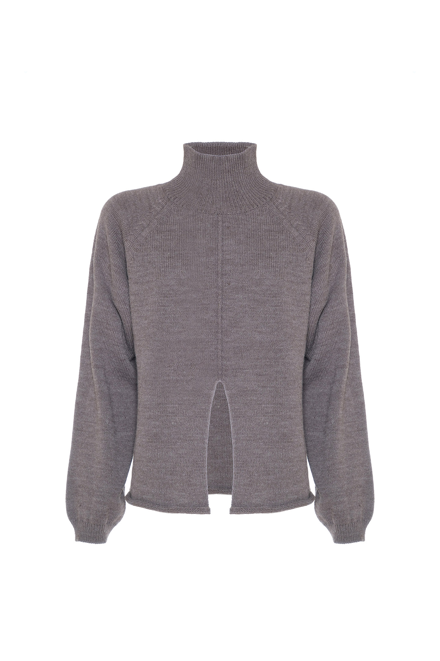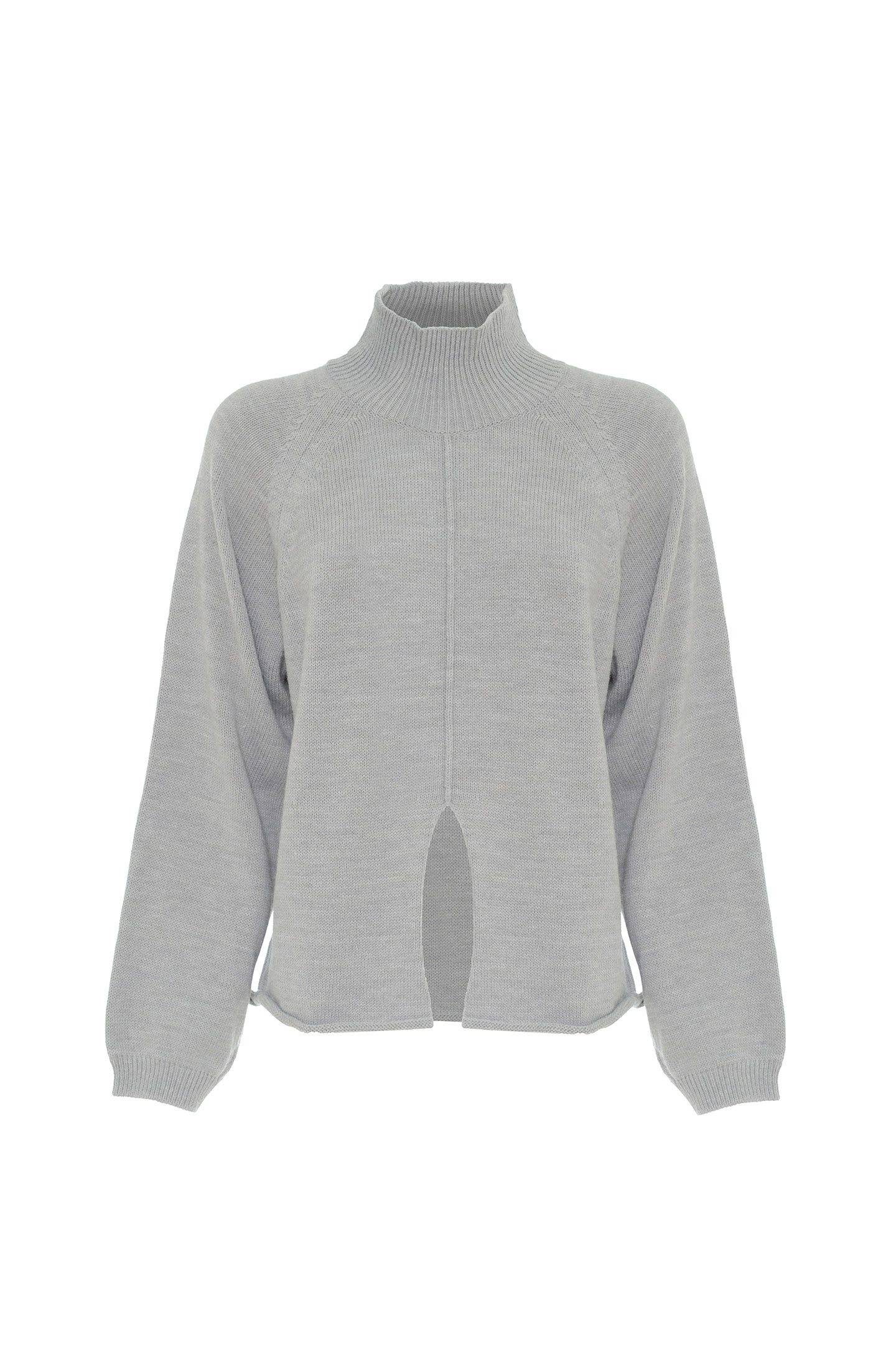 WOOL BLEND SHAVED YARN PULLOVER WITH HIGH RIBBED COLLAR. SOFT DESIGN WITH RAGLAN SLEEVES AND CLEAN CUT ON THE FRONT THAT ADDS A CONTEMPORARY TWIST. FINISHED WITH RAW CUT BOTTOM. A VERSATILE MUST-HAVE, PERFECT FOR REDEFINING INFORMAL LOOKS WITH STYLE.