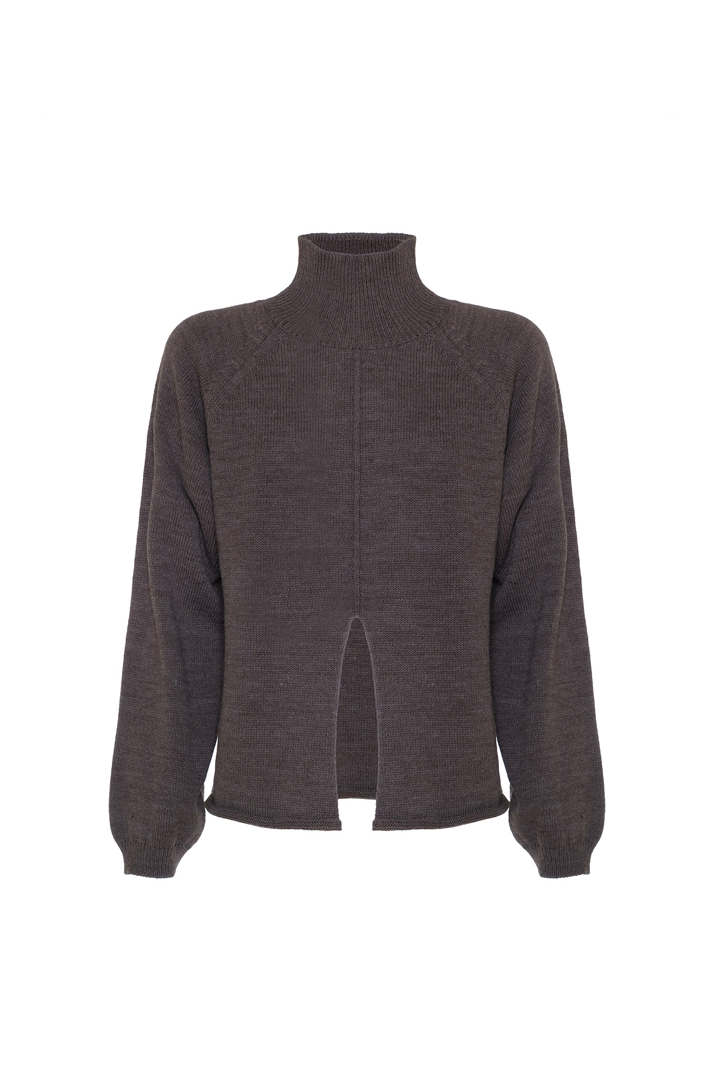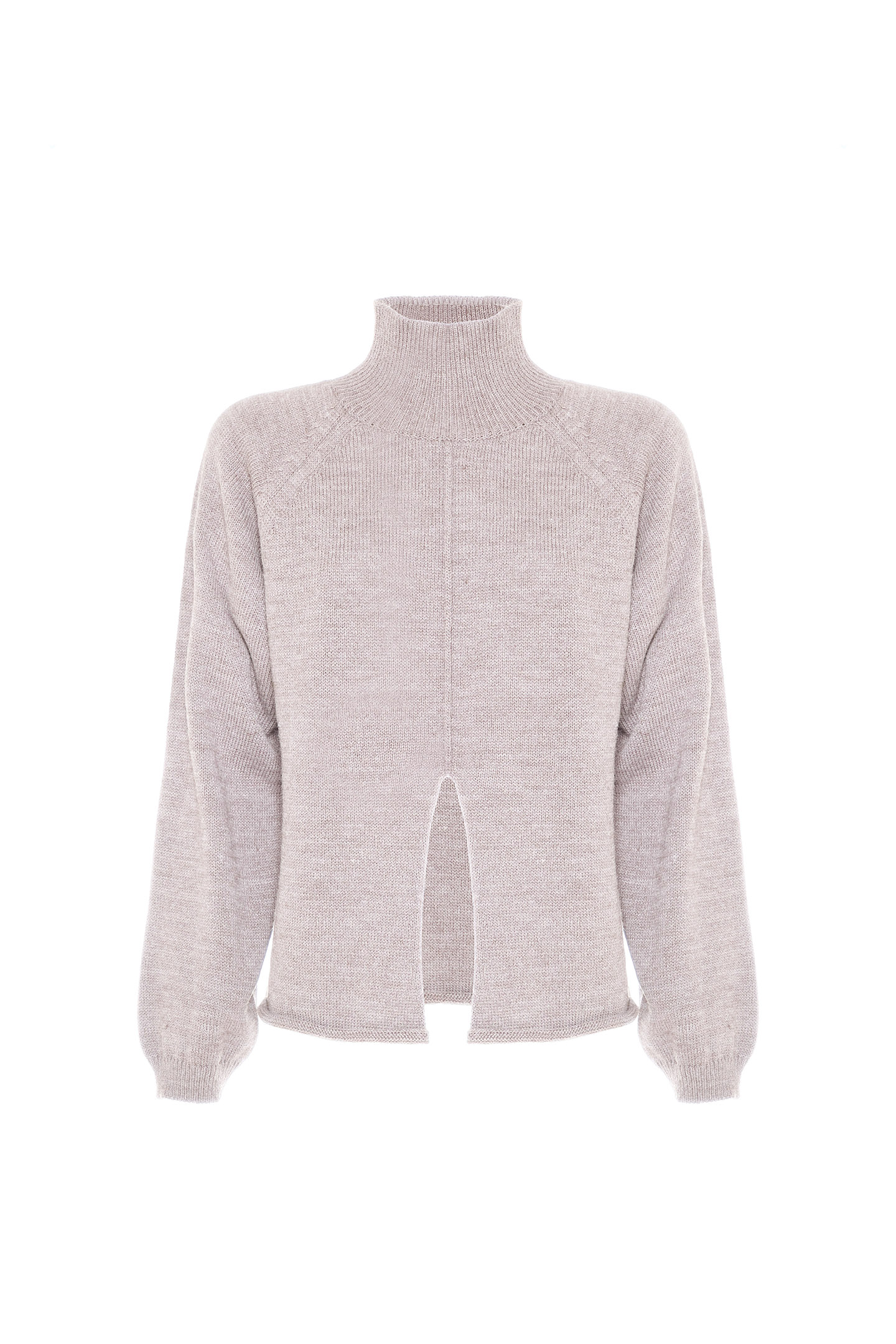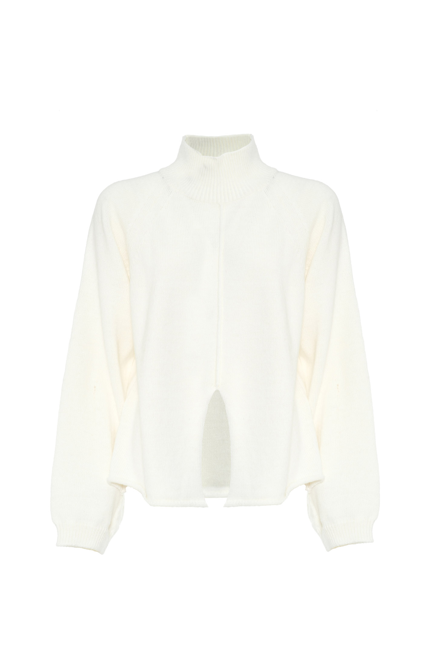 WOOL BLEND SHAVED YARN PULLOVER WITH HIGH RIBBED COLLAR. SOFT DESIGN WITH RAGLAN SLEEVES AND CLEAN CUT ON THE FRONT THAT ADDS A CONTEMPORARY TWIST. FINISHED WITH RAW CUT BOTTOM. A VERSATILE MUST-HAVE, PERFECT FOR REDEFINING INFORMAL LOOKS WITH STYLE.