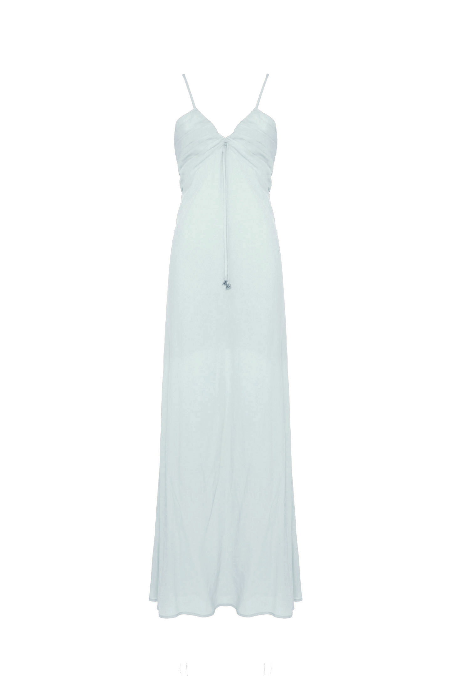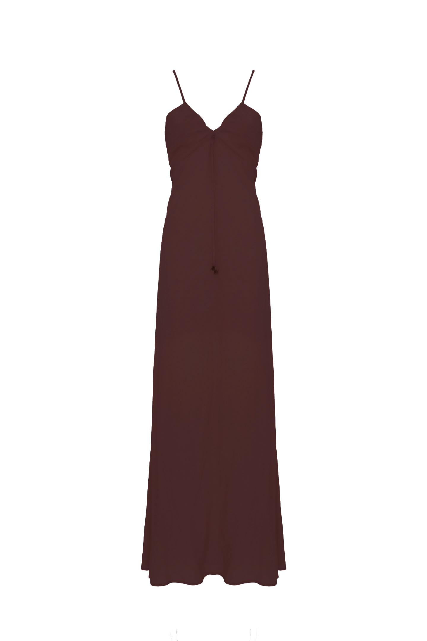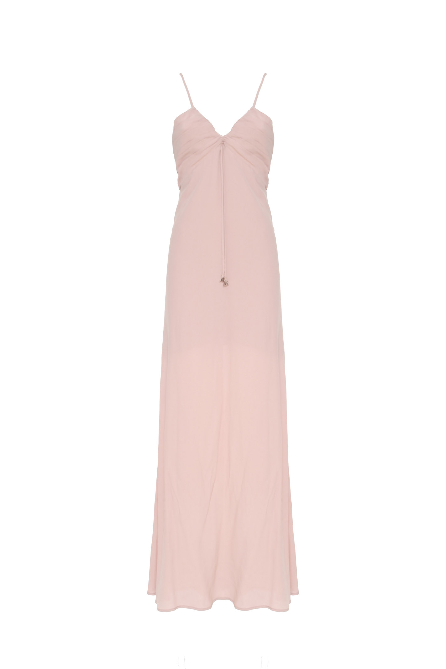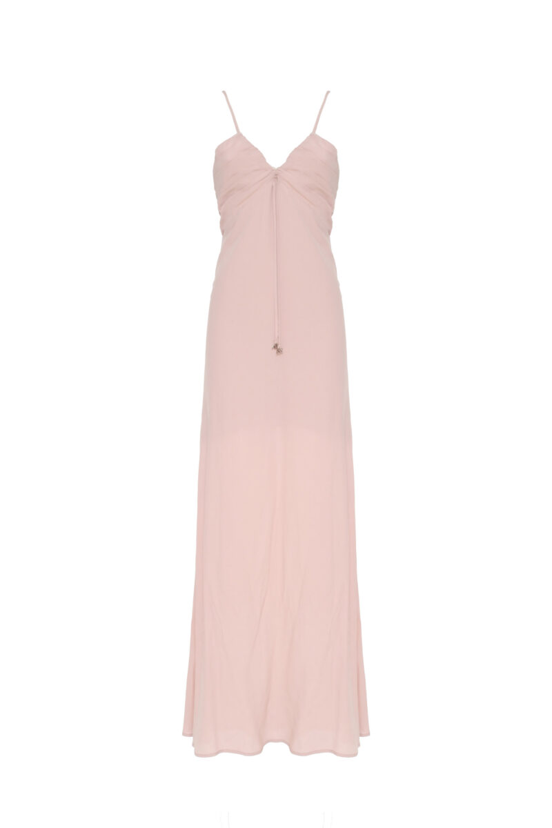 LONG DRESS WITH A STRAIGHT, FITTING SILHOUETTE IN PURE VISCOSE. FEATURES THIN STRAPS, A V-NECK AND DRAPPING AT THE BUST. FINISHED WITH THIN HANGING CORDS AND LOGO DETAILS AT THE BOTTOM. THE FLOWING DESIGN AND LIGHTWEIGHT FABRIC MAKE IT IDEAL FOR UNDERSTATED, SOPHISTICATED LOOKS FROM DAY TO NIGHT. THE MODEL IS 1.78 M TALL AND WEARS A SIZE 42 IT.