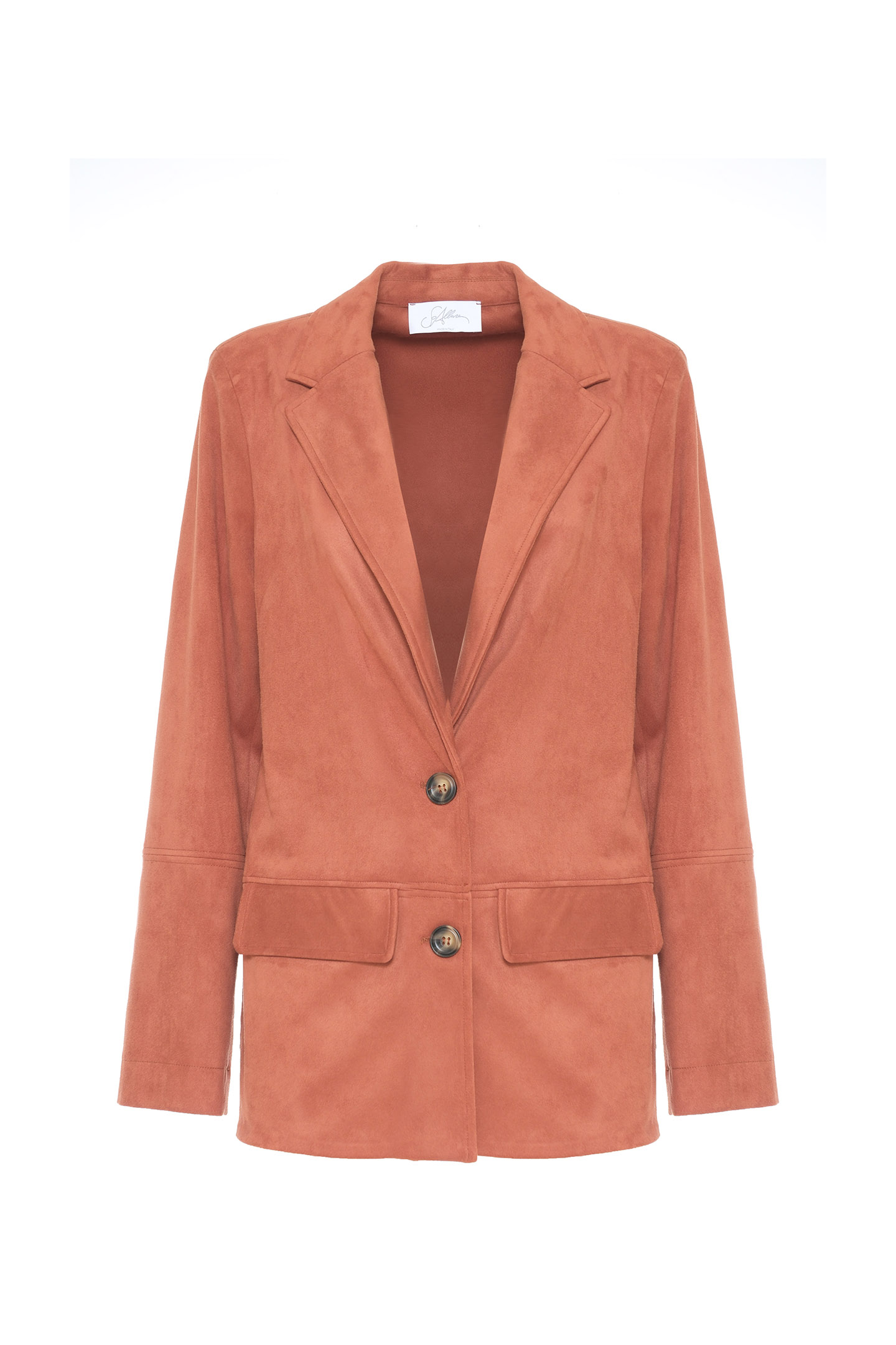ECO-SUEDE JACKET WITH CLASSIC LAPEL. STRAIGHT-FIT DESIGN WITH SINGLE BREASTED STYLE AND SLANT POCKETS. FEATURING TONE-ON-TONE VISIBLE STITCHING. THE MODEL IS 178 CM TALL AND WEARS A SIZE S.
