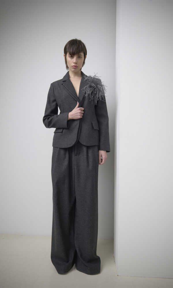 JACKET WITH SALT AND PEPPER PATTERN IN WOOL BLEND TWEED. FEATURES CLASSIC LAPEL COLLAR, TWO-BUTTON CLOSURE AND PATCH POCKETS WITH FLAPS. OVERSIZED FIT, WITH A MASCULINE STYLE. FULLY LINED FOR ADDED COMFORT AND WARMTH. A TIMELESS PIECE, PERFECT FOR CREATING A TIMELESS OUTFIT.
