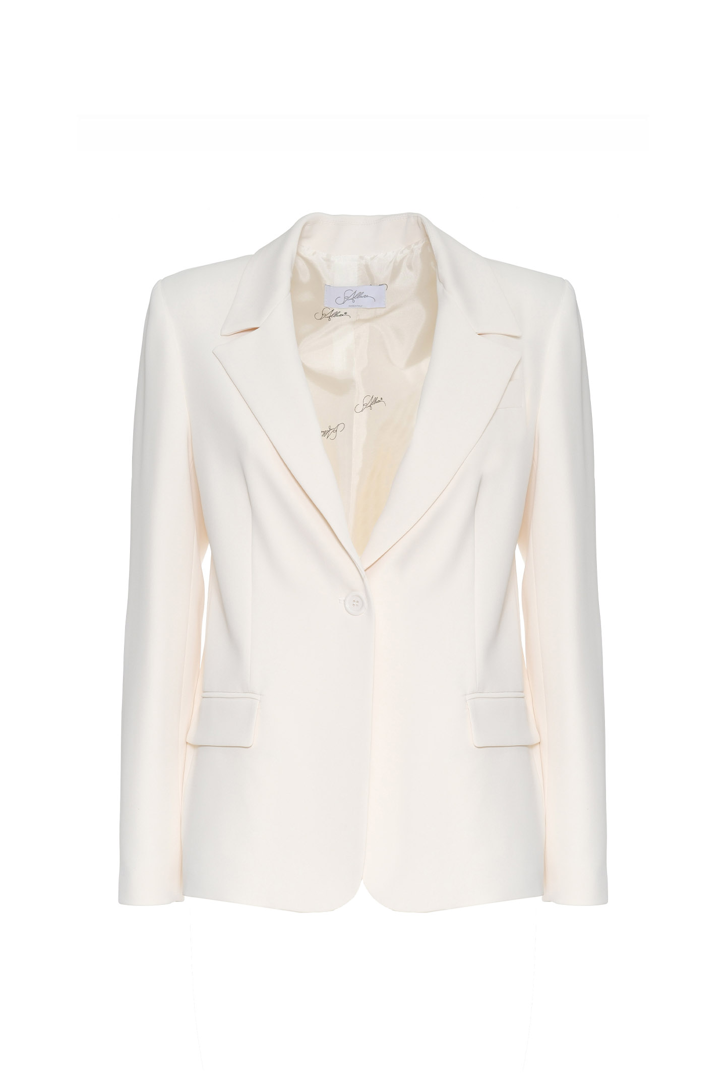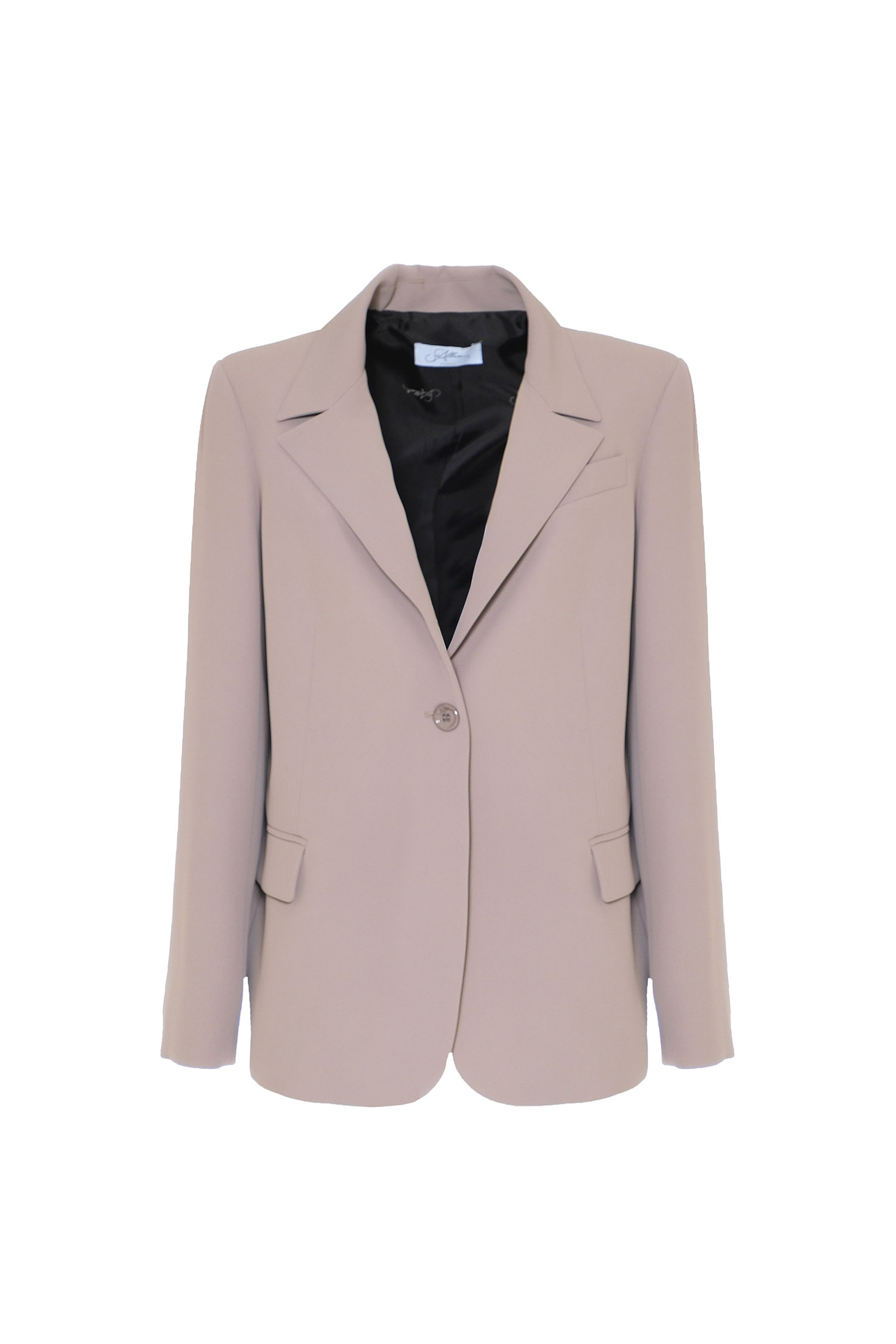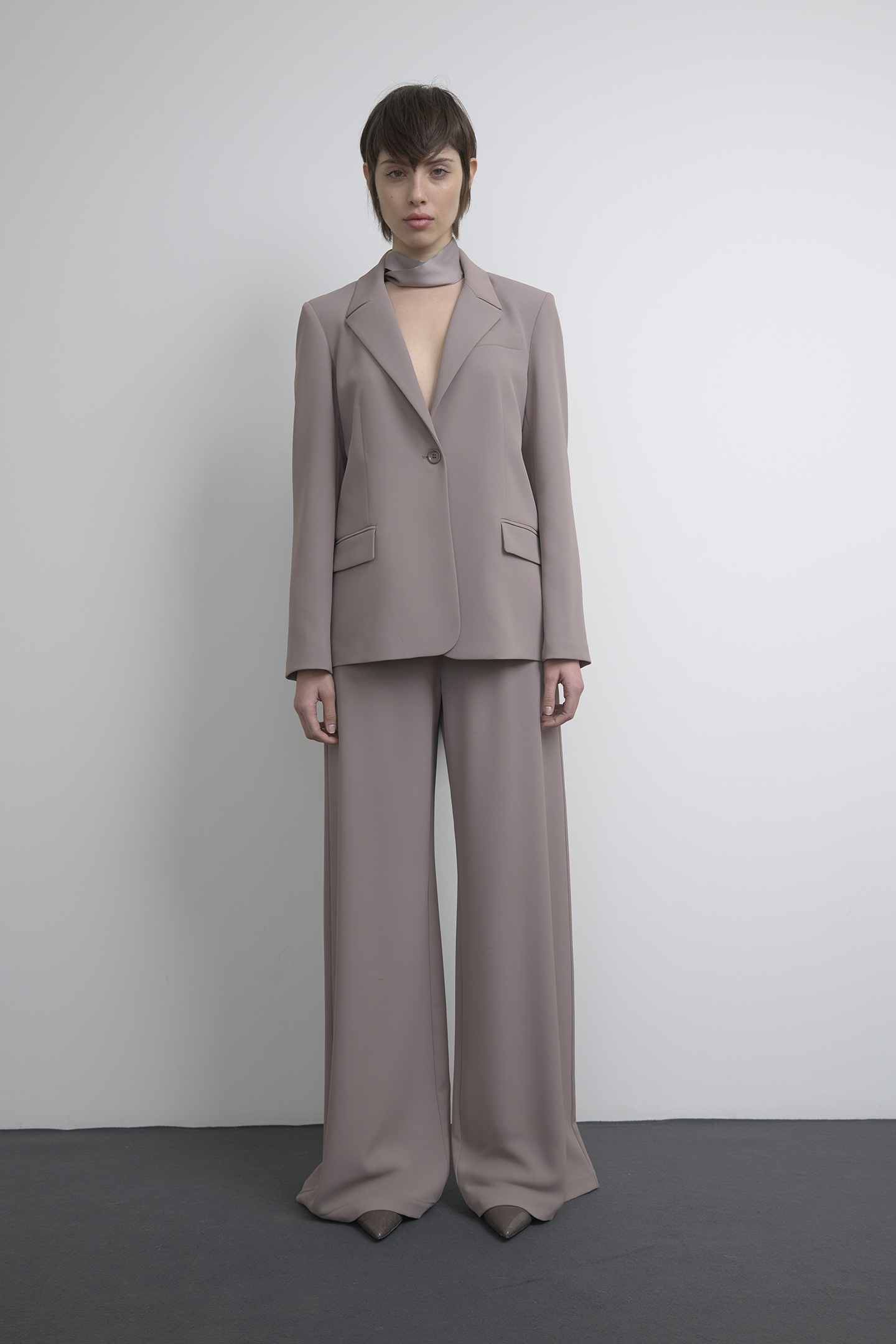 SINGLE-BREASTED JACKET MADE FROM CREPE FABRIC WITH A FLUID AND COMPACT TEXTURE. DESIGN WITH CLASSIC LAPEL COLLAR, SIDE POCKETS WITH FLAPS AND CENTRAL SLIT AT THE BACK. SLIGHTLY SLIM FIT THAT ENHANCES THE SILHOUETTE WHILE MAINTAINING A SOBER AND REFINED ELEGANCE. THE STRAIGHT LINE AND COMPACT TEXTURE OF THE FABRIC ENHANCE ITS VERSATILITY, MAKING THIS GARMENT A MUST-HAVE FOR EVERY OCCASION.