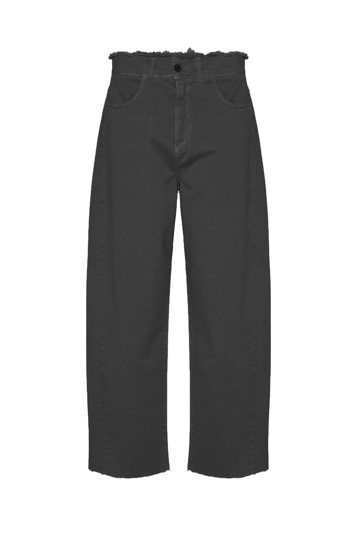 HIGH-WAISTED BARREL-CUT JEANS WITH A BELL-BOTTOM SILHOUETTE AND FRINGED EDGING AT THE WAIST. DESIGNED TO BE SNUG AT THE WAIST AND HAVE A LOOSE, RELAXED FIT ON THE LEGS. MADE FROM STRETCHY, GARMENT-DYED DENIM.
