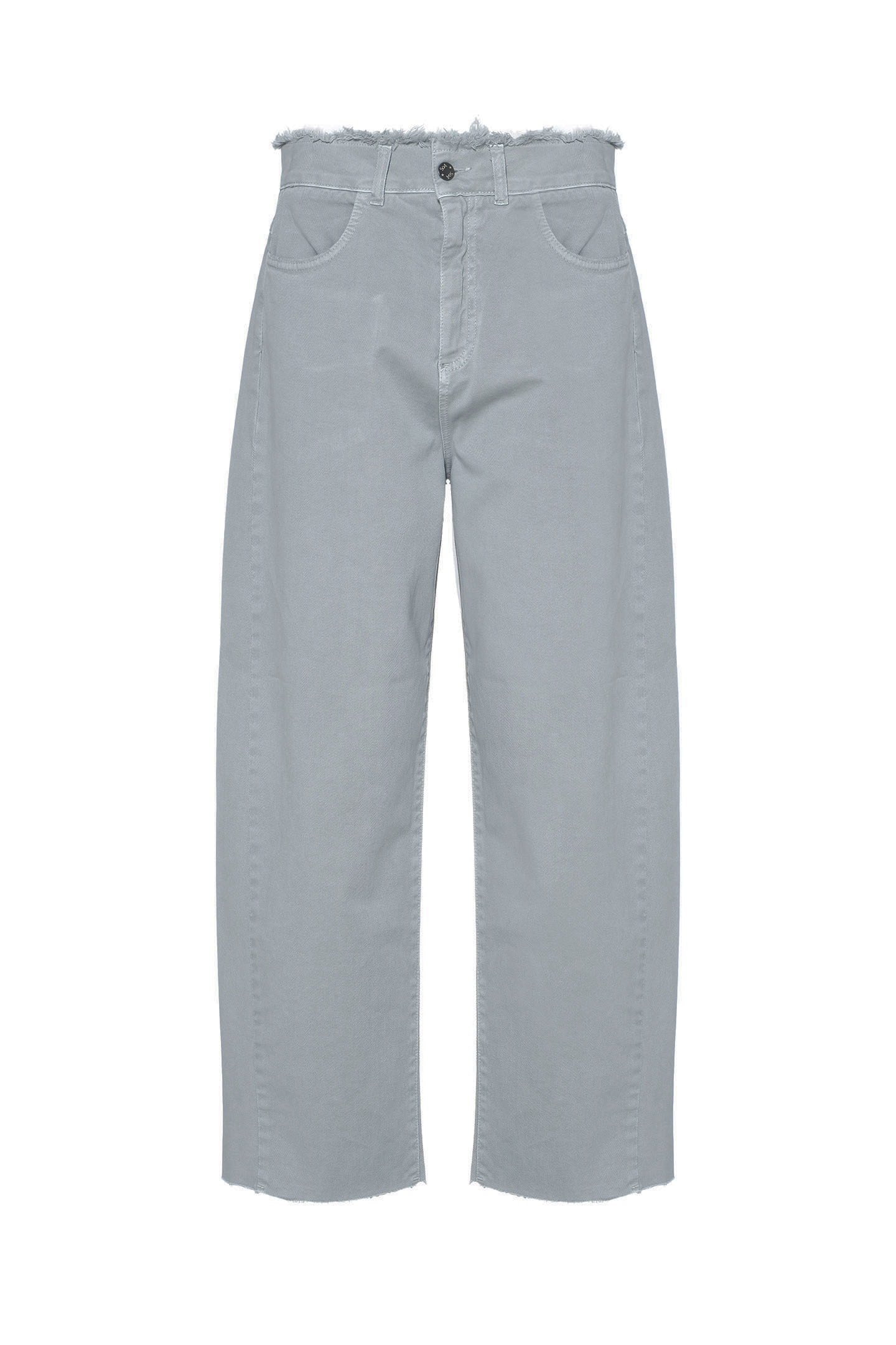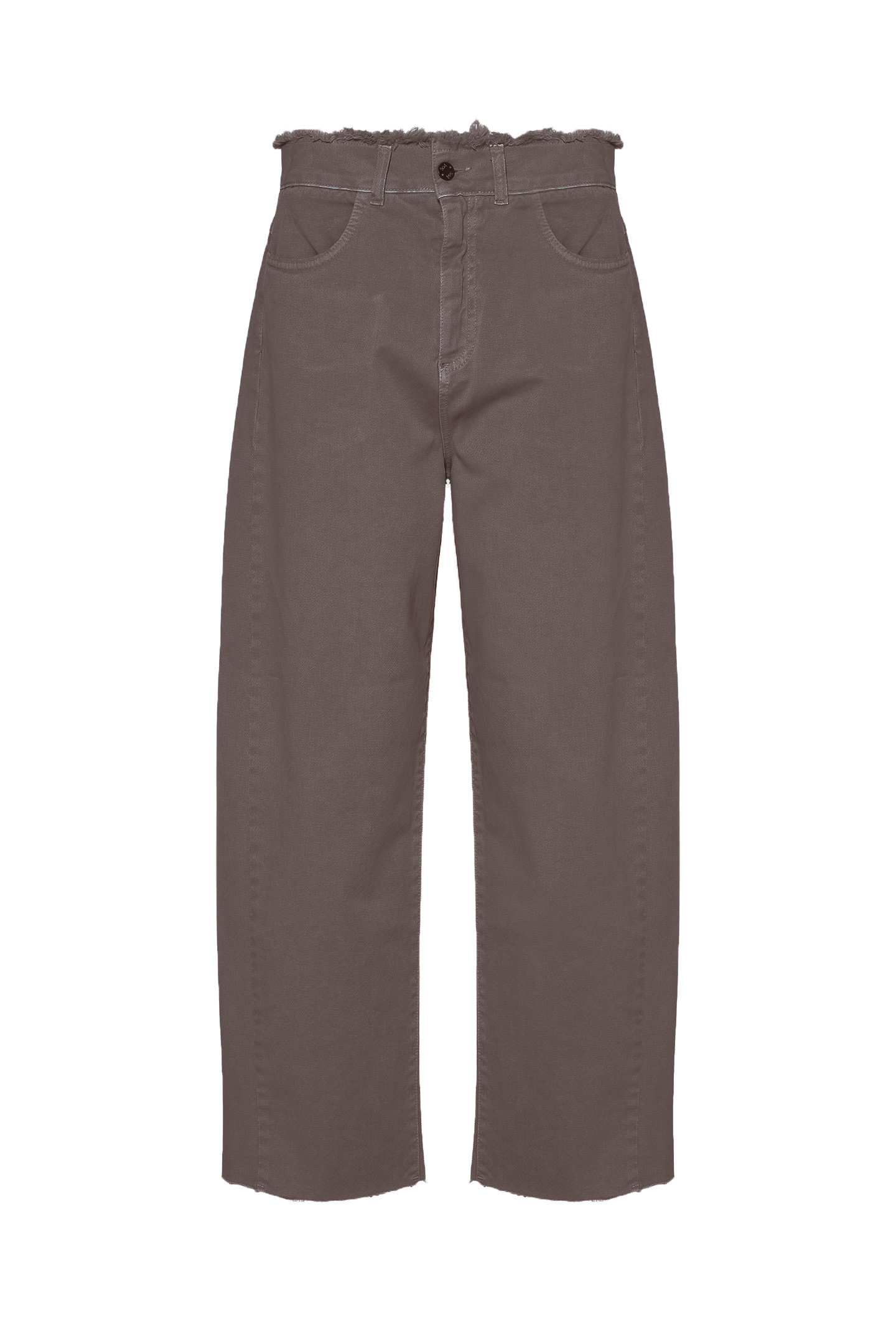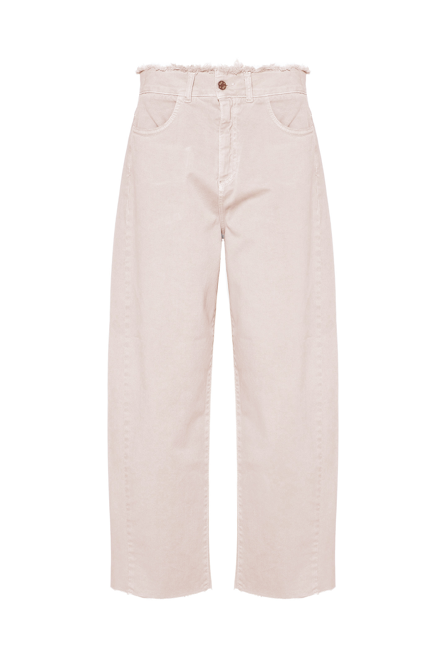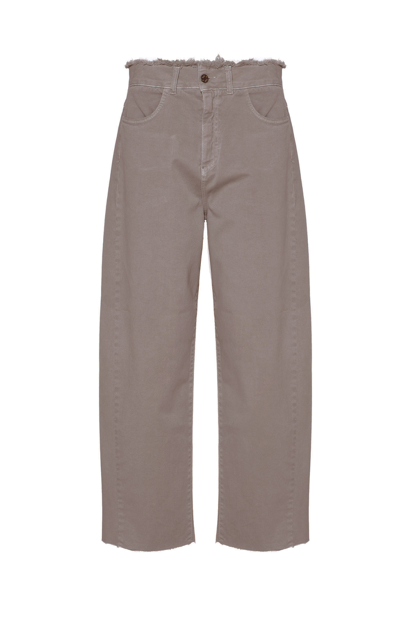 HIGH-WAISTED BARREL-CUT JEANS WITH A BELL-BOTTOM SILHOUETTE AND FRINGED EDGING AT THE WAIST.