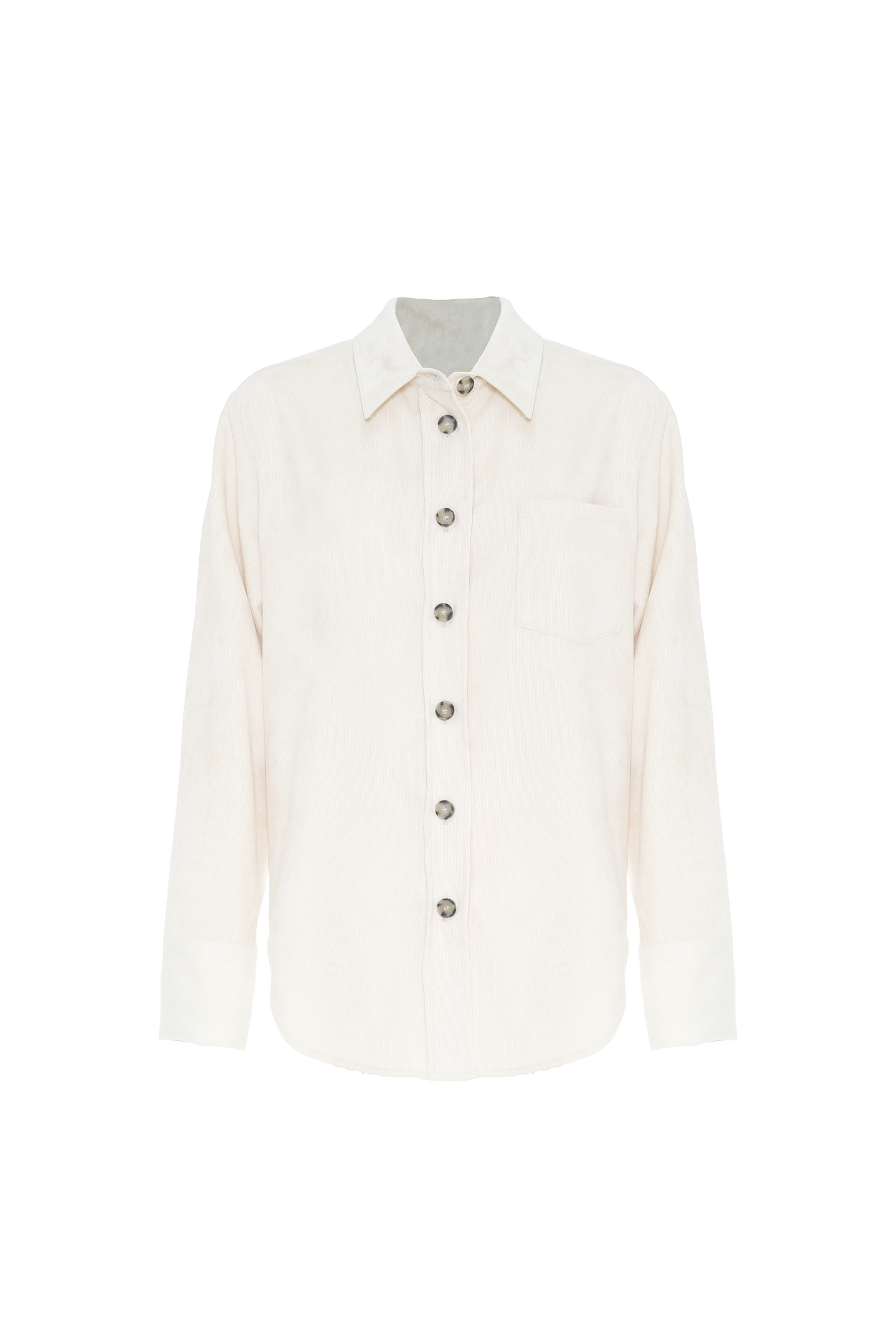 CORDUROY SHIRT WITH A PATCHED CHEST POCKET. REGULAR FIT, SLIGHTLY OVERSIZED, WITH A TONE-ON-TONE FRONT BUTTON CLOSURE. A TIMELESS WORKWEAR STYLE, PERFECT FOR COMFORTABLE LOOKS AND EFFORTLESS STYLE.