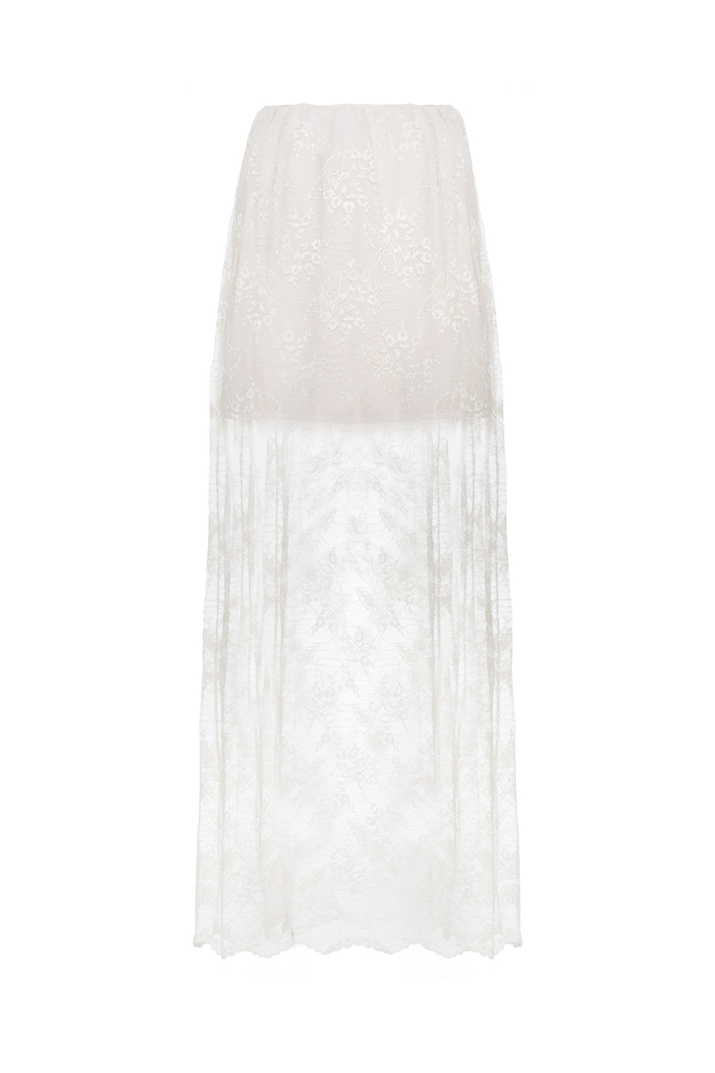 GONNA LUNGA IN PIZZO CON MOTIVO FLOREALE, REALIZZATA IN TESSUTO TRASPARENTE CON SOTTOGONNA IN TONO.