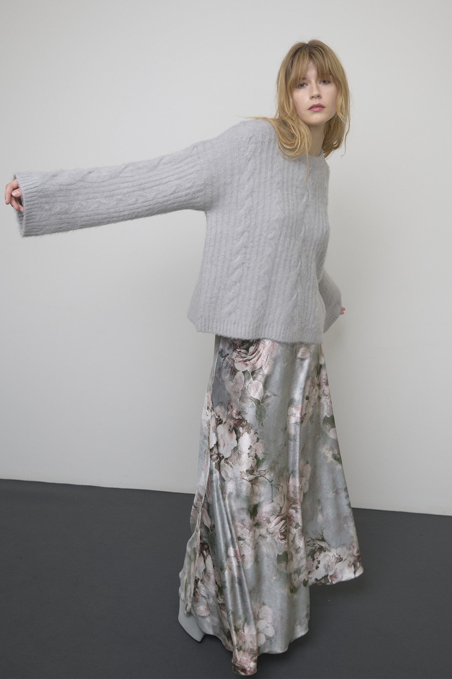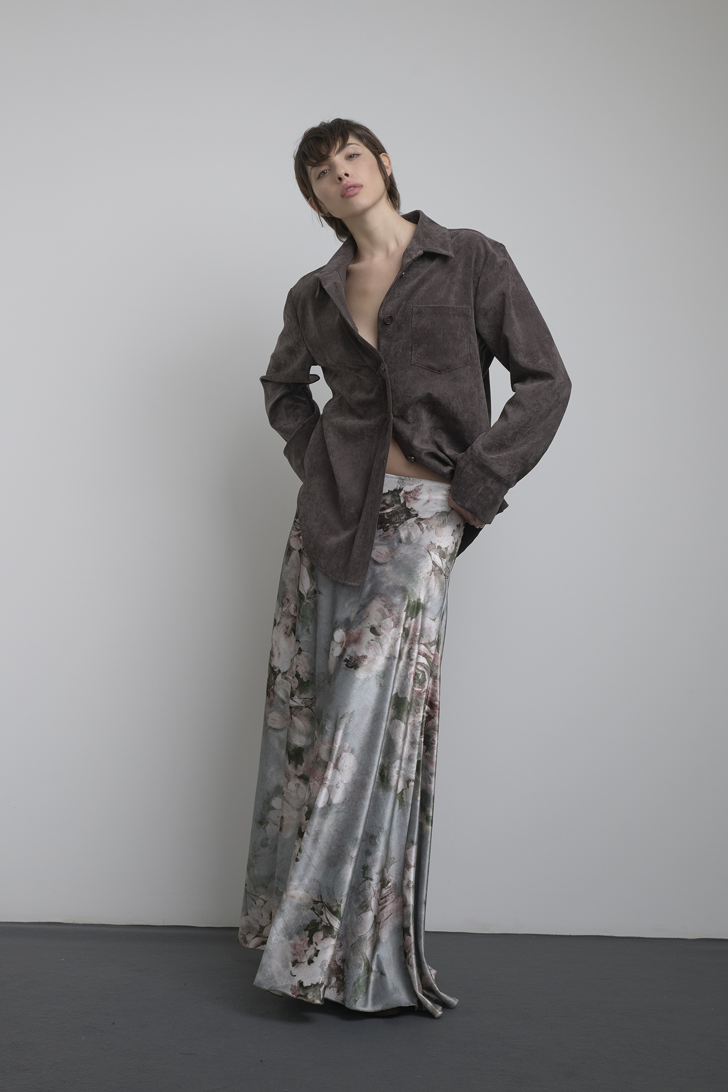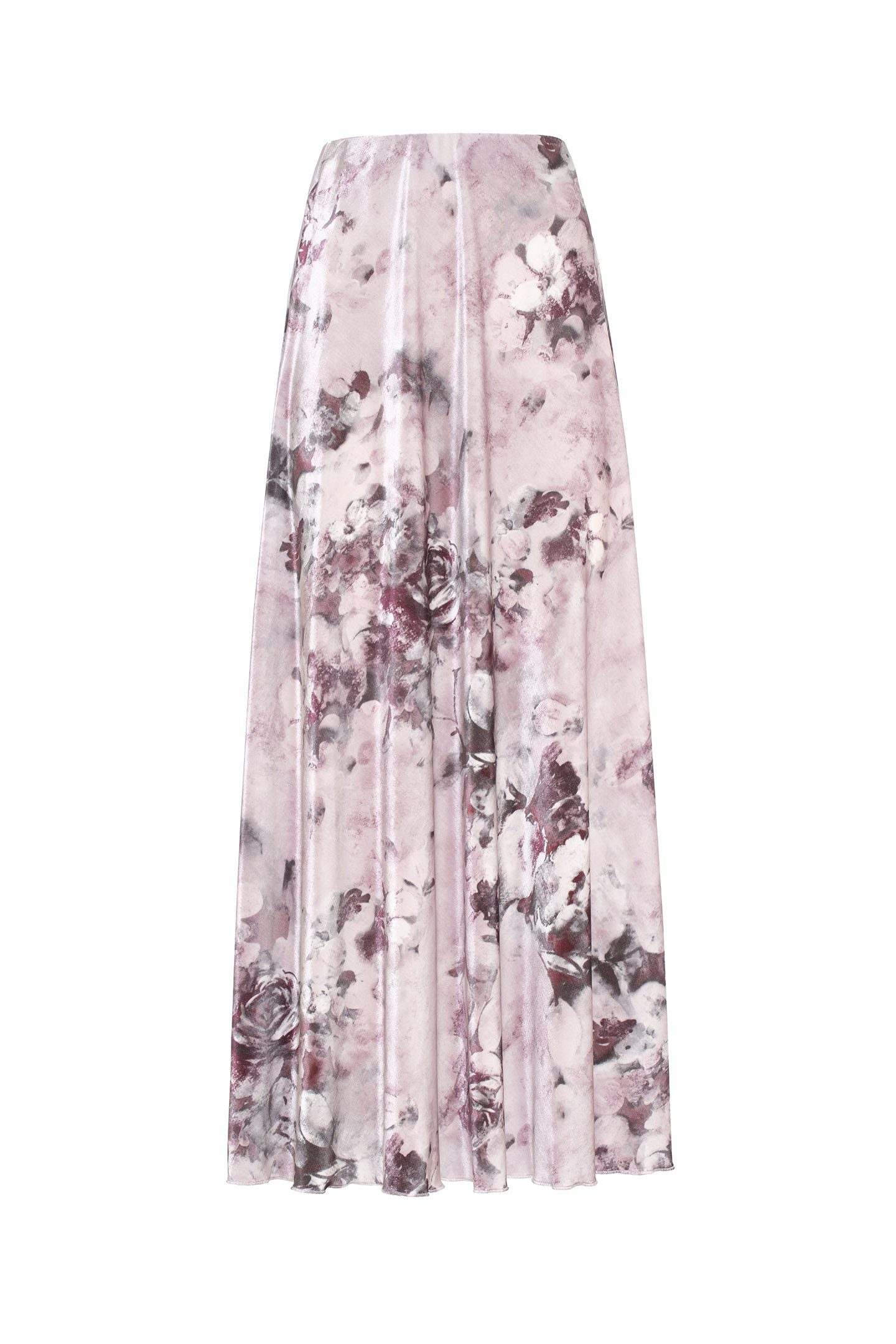 MAXI GONNA IN VELLUTO CON MOTIVO FLOREALE.
